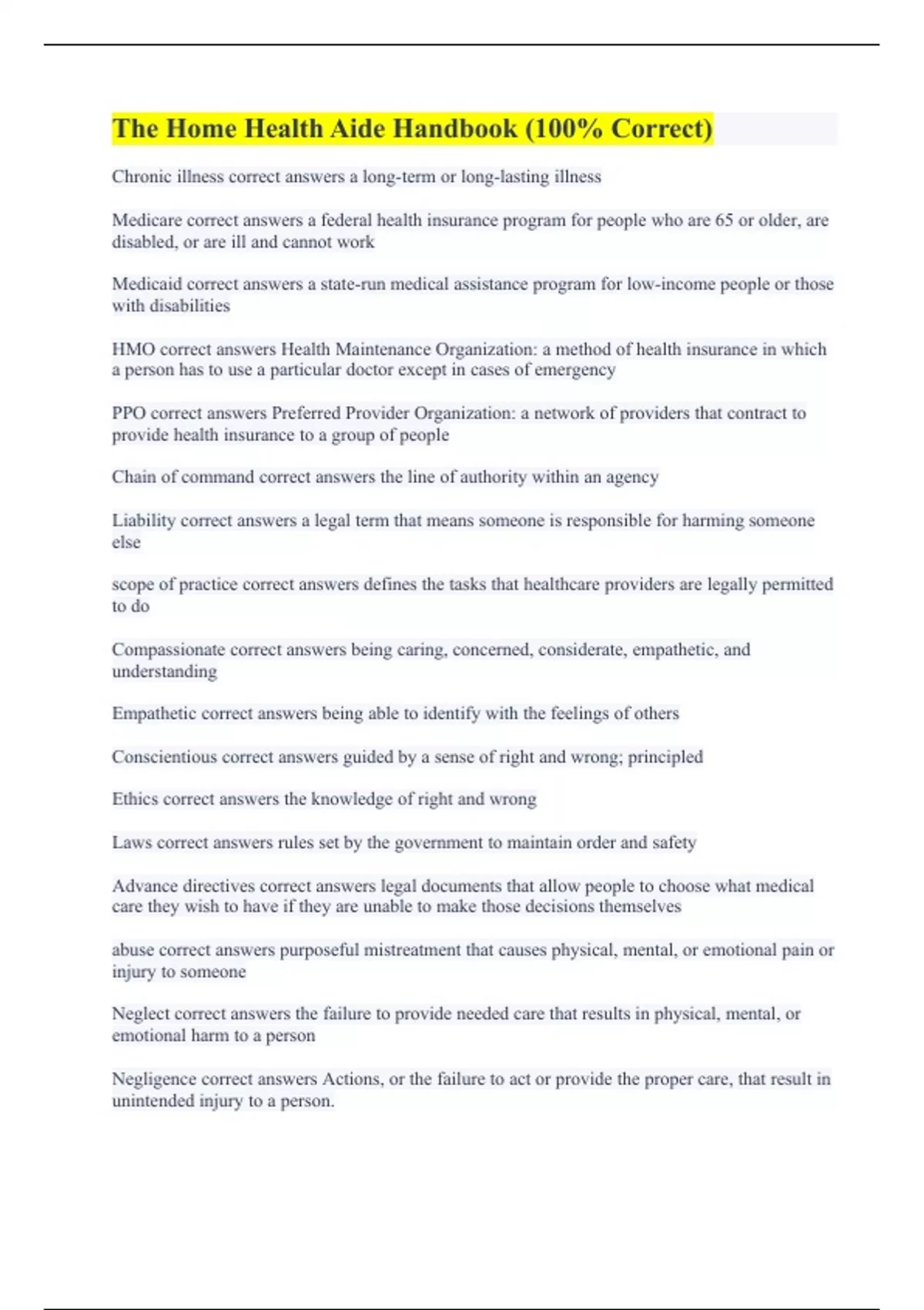 HHA EXAM (100% Correct Answers) The Home Health Aide Handbook (100% Correct) HOME CARE AIDE KNOWLEDGE TEST (A+ GRADED) Home Health Aide Exam 2024 (All Correct) Home Health Aide 2024 Exam Questions & Answers (100% Accurate) 2024 Home Health Aide Exam Review (A+ Guaranteed) Home Health Aide 2023/2024 Final Exam (100% Verified Solutions) HOSA Home hea