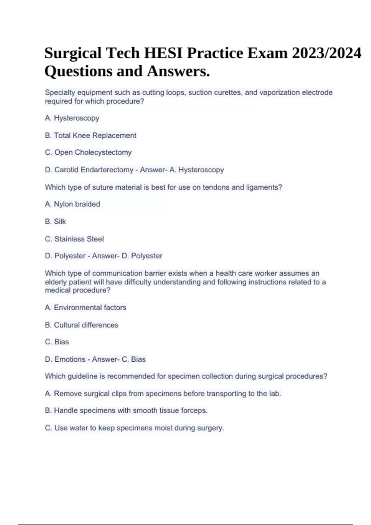 SURGICAL TECHNOLOGIST PRACTICE EXAM QUESTIONS AND ANSWERS, SURGICAL TECH STUDY GUIDE FOR CST EXAM TEST BANK QUESTIONS AND ANSWERS, Surgical Tech Practice Exam 300QUESTIONS AND ANSWERS (VERIFIED) & Surgical Tech HESI Practice Exam 2023/2024 Questions and Answers.