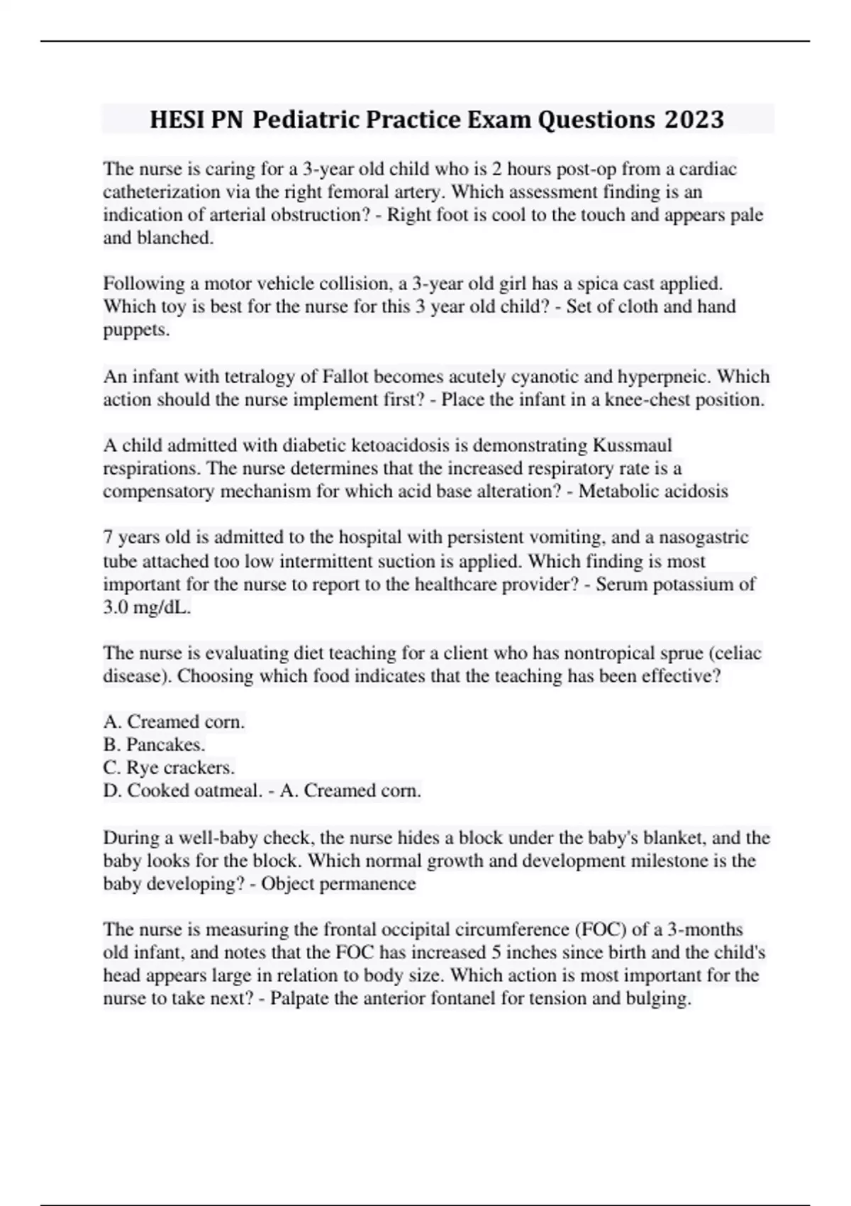 HESI PN Pediatric Hesi Exam Test Bank Latest Version Study Guide Bundle 2023/2024