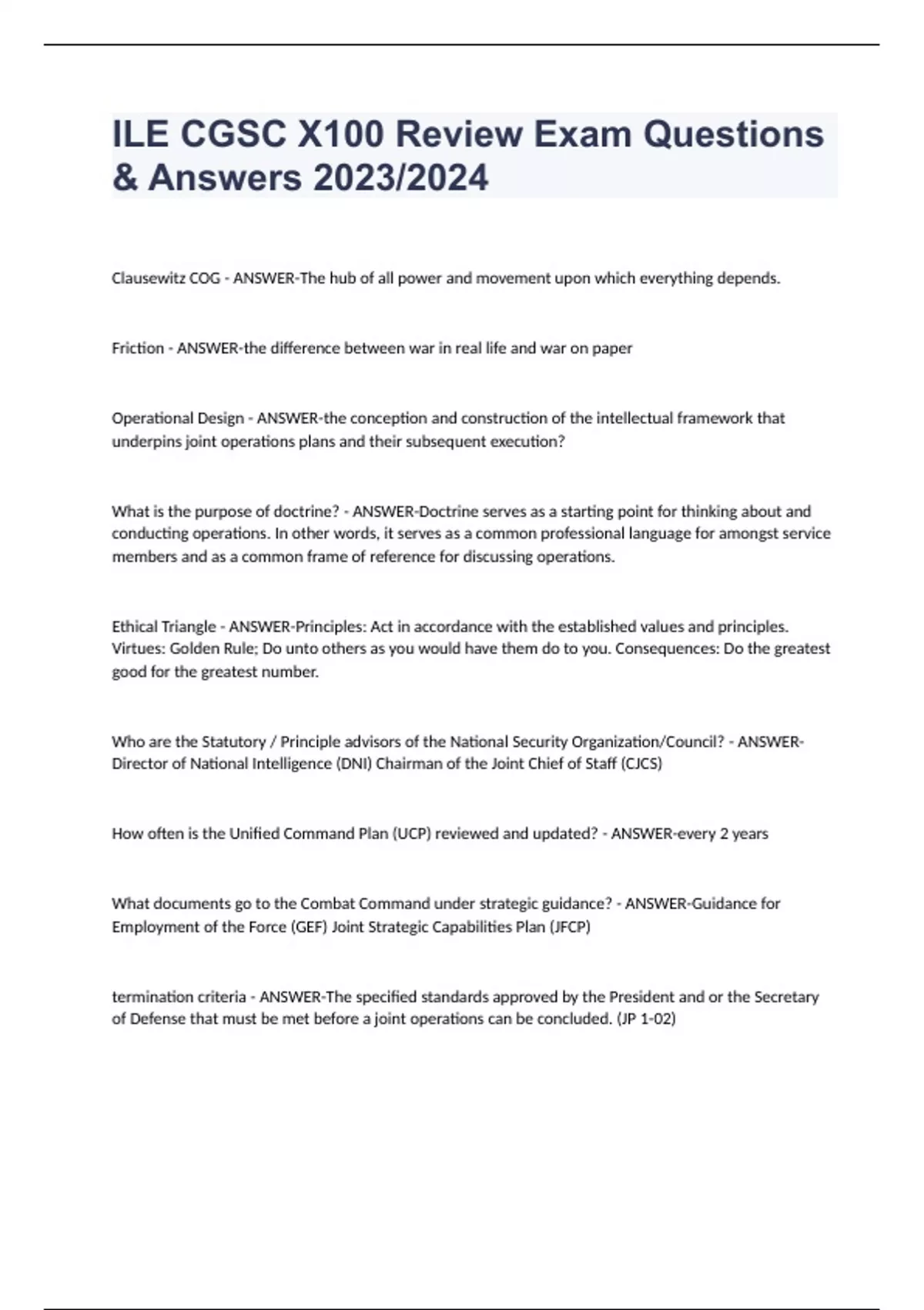 ILE CGSC X100 Review Exam Questions & Answers 2023/2024