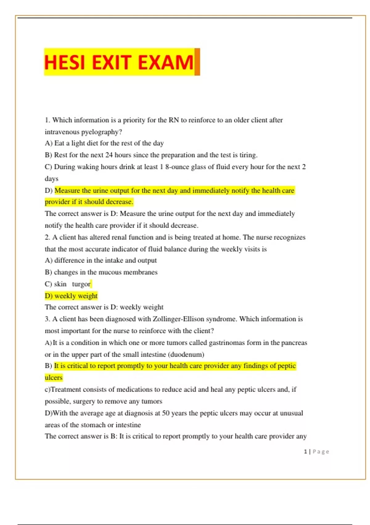 HESI RN EXIT PACKAGE DEAL QUESTIONS AND ANSWERS (VERIFIED)