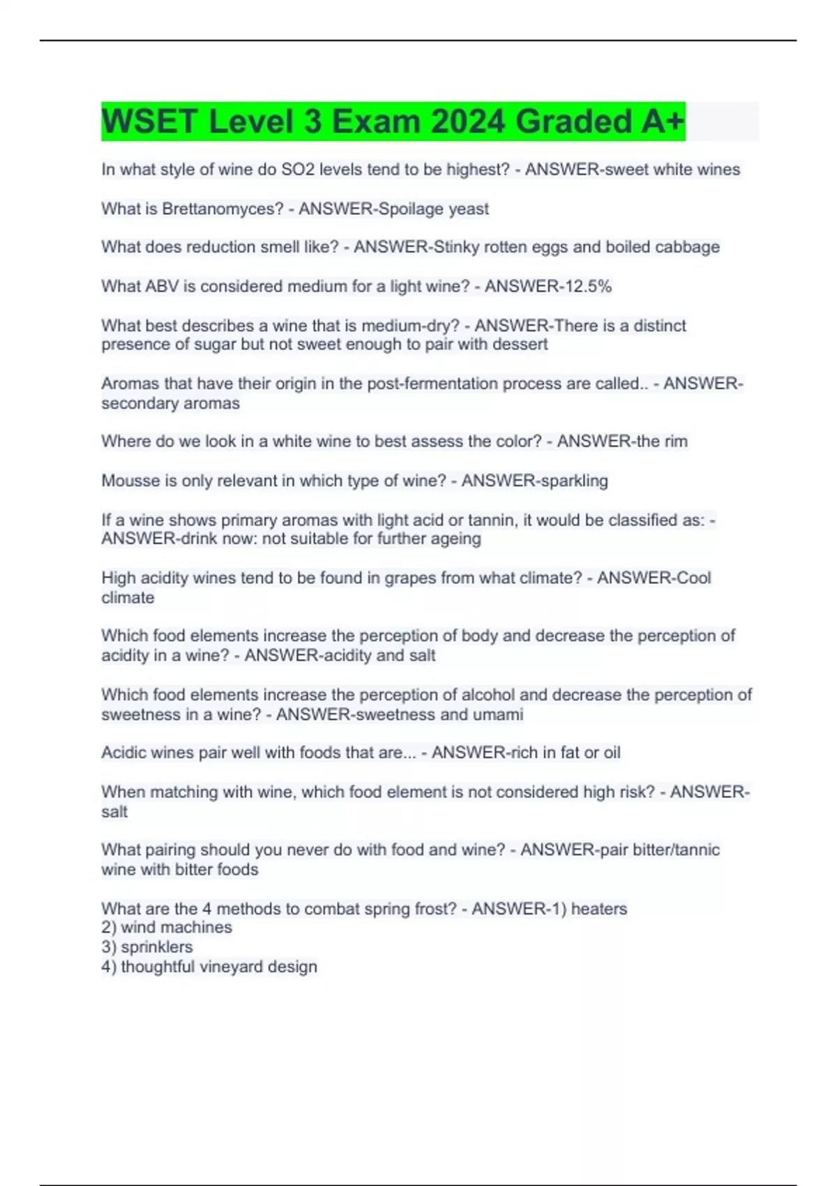 Exam (elaborations) WSET Level 1 Practice Quiz 2024 2 Exam (elaborations) WSET Level 2 Award: Mock Exam 2024 3 Exam (elaborations) WSET level 2 Award- Practice Exam 2023/2024 4 Exam (elaborations) WSET Level 2 Award in Wines and Spirits Practice Exam Questions and Answers 2023/2024 Graded A+ 5 Exam (elaborations) WSET Level 3 Exam 2024 Graded A