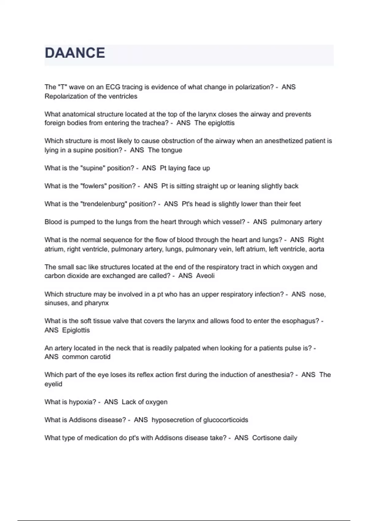DAANCE EXAM QUESTIONS AND ANSWERS