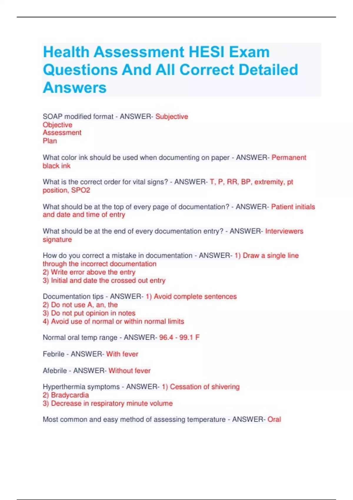 bundle for HEALTH ASSESSMENT HESI LATEST VERSION ACTUAL EXAM QUESTIONS AND CORRECT DETAILED ANSWERS