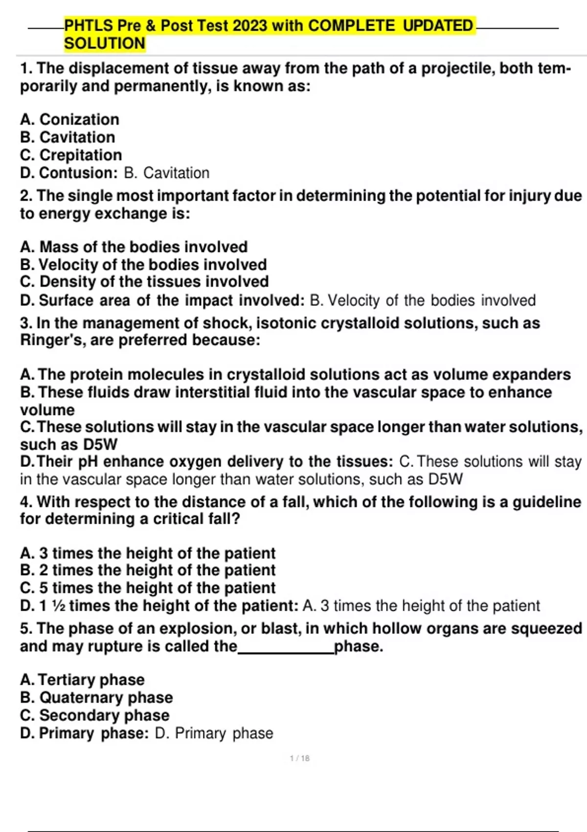 PHTLS 9th Ed. Self-test with complete solution()