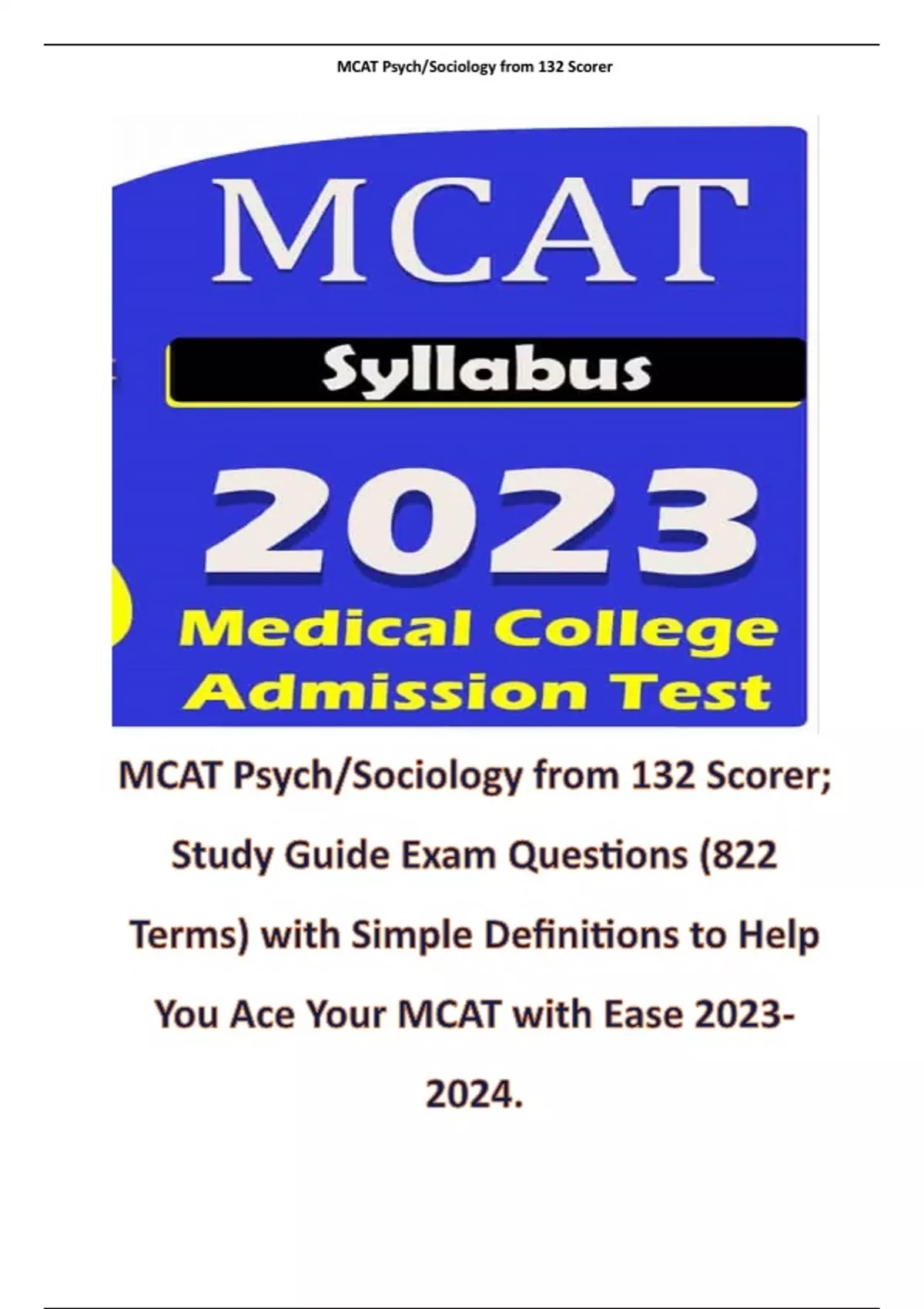 1 Exam (elaborations) MCAT: Psychology & Sociology Study Questions (295 Terms) with Correct Answers, Already Graded A+. 2 Exam (elaborations) MCAT Anki Master Study Deck Exam (2,000 Questions) with Answers / A+ Score Solution Update 2023. 3 Exam (elaborations) MCAT Biology Study Guide Exam Questions with Correct Solutions Already Graded A+ 2023-2