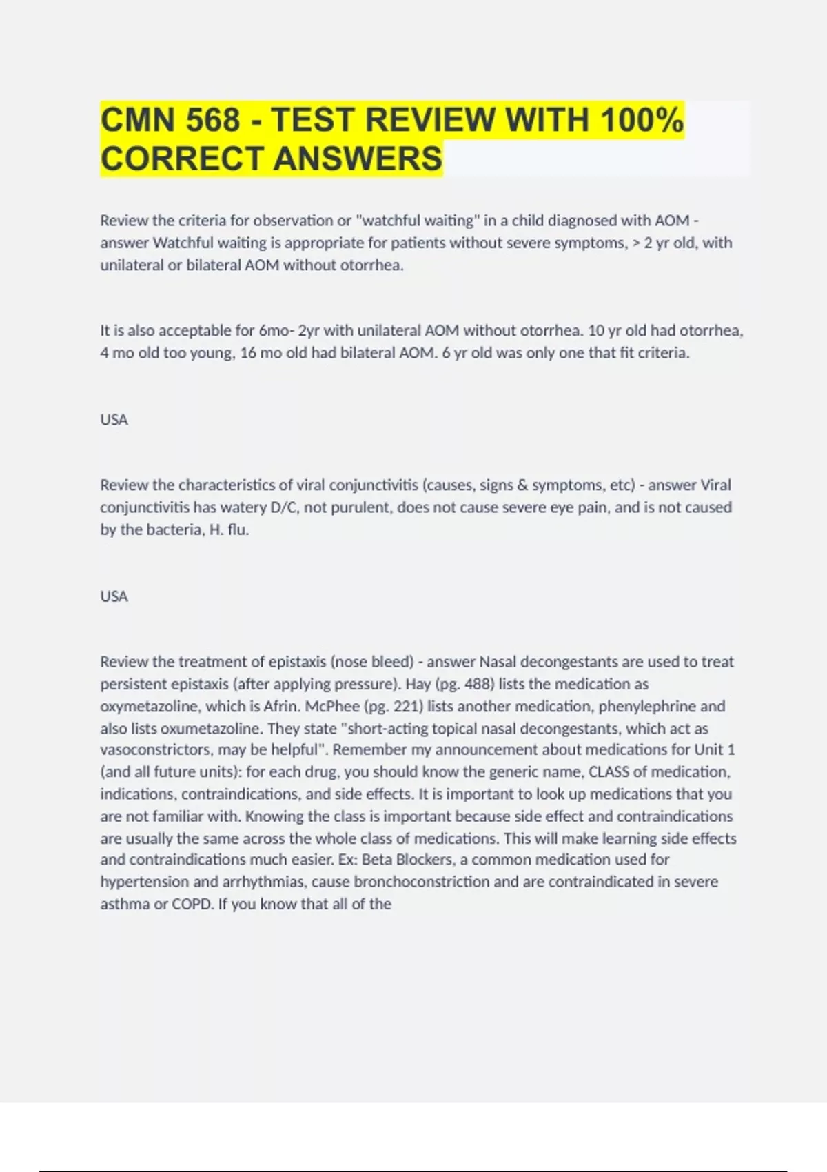 BUNDLE::::::CMN 568 EXAMS ALL WITH 100% CORRECT ANSWERS|GUARANTEED SUCCESS