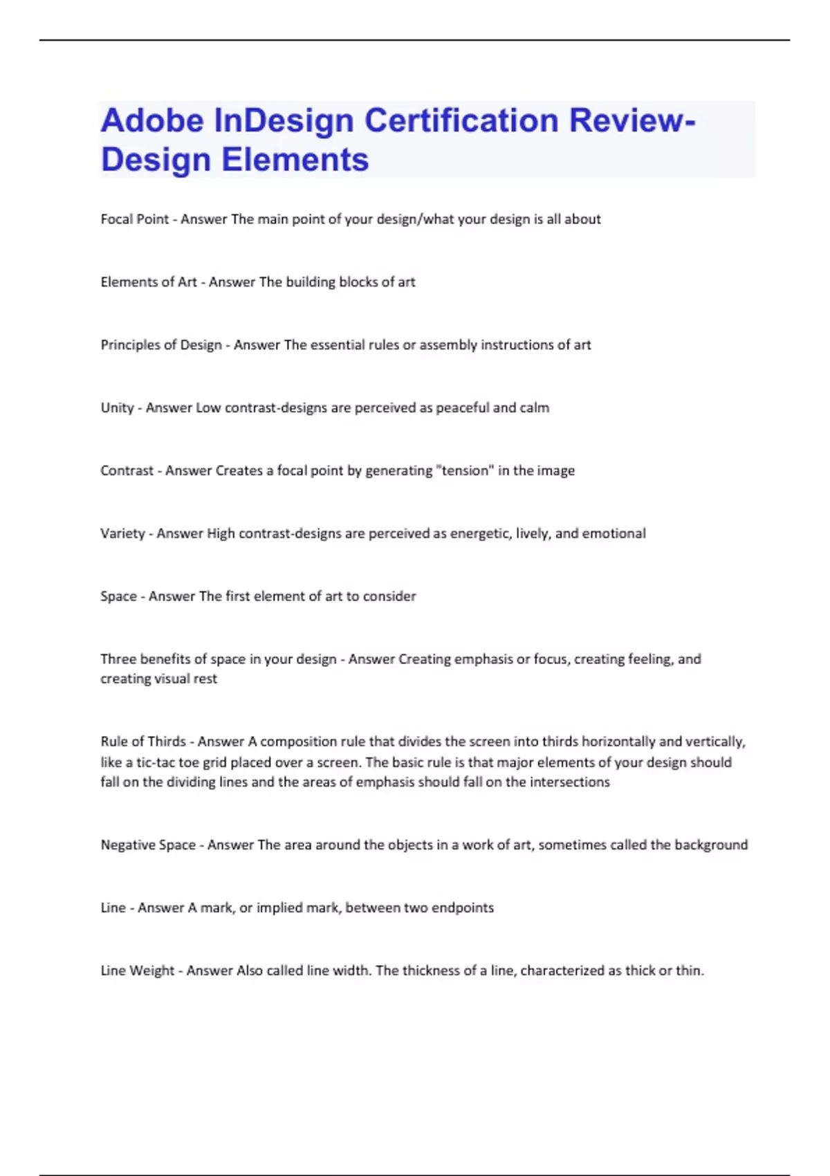 Adobe InDesign Certification Review-Design Elements Questions With 100% Correct Answers.