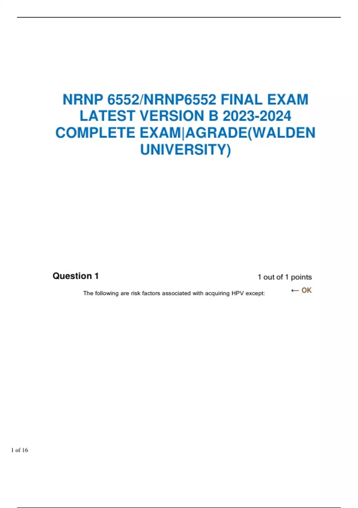 bundle for NRNP 6552 / ADVANCED NURSE PRACTICE /REPRODUCTIVE HEALTH CARE WALDEN UNIVERSITY MIDTERM EXAM LATEST UPDATE 2023 100% VERIFIED SOLUTIONSNRNP 6552 / ADVANCED NURSE PRACTICE /REPRODUCTIVE HEALTH CARE WALDEN UNIVERSITY MIDTERM EXAM LATEST UPDATE 20