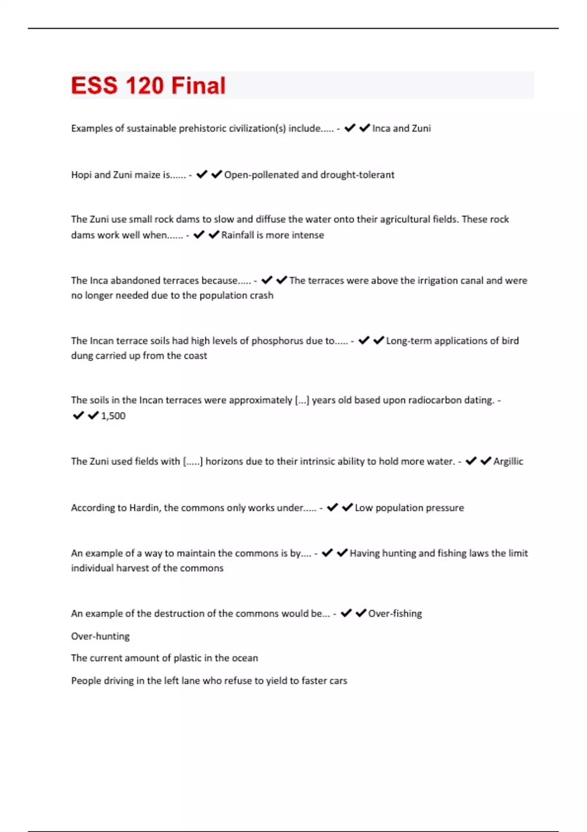 ESS 120 - Final Exam | 246 Questions And Answers Already Graded A+
