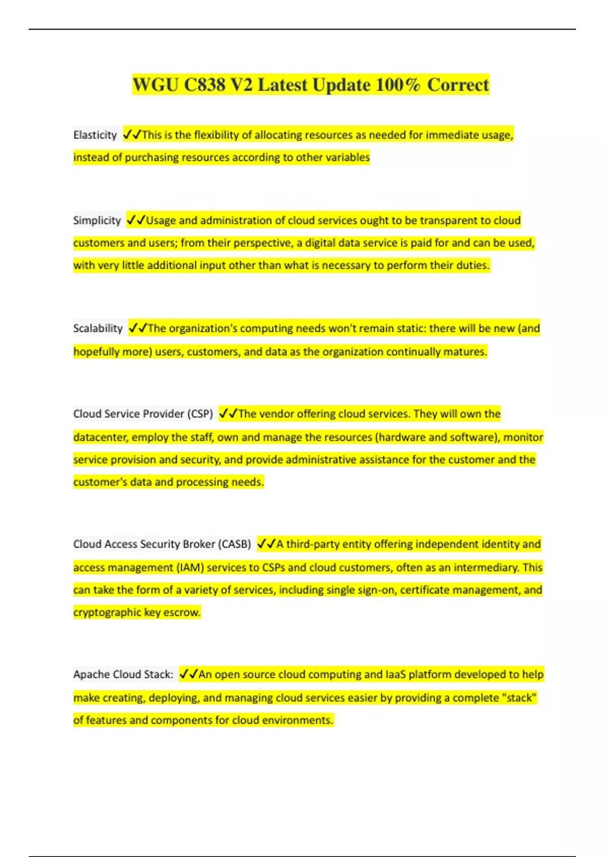 WGU C838 CLOUD COMPUTING & MANAGEMENT PACKAGE DEAL WITH COMPLETE & VERIFIED SOLUTIONS | ALREADY PASSED| LATEST UPDATE 2024