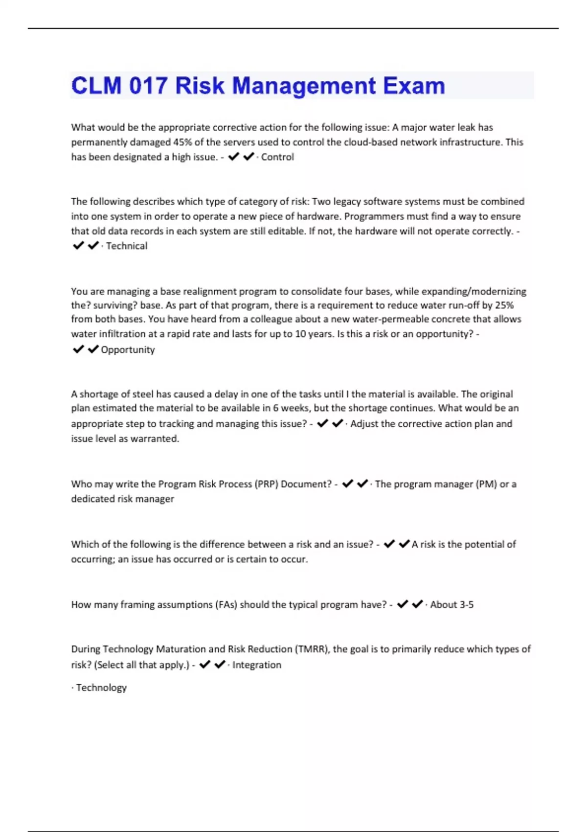 CLM 017 Risk Management Exam Package Deal Graded A+