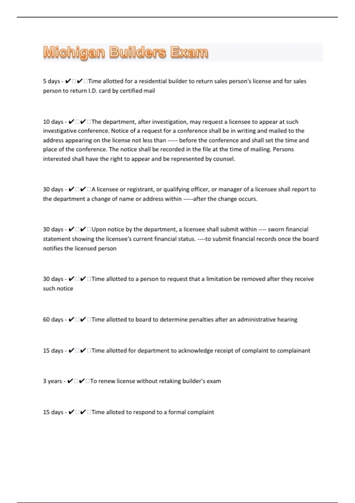 Michigan Builders 171 Exam Questions with 100% Correct Answers | Updated 2023 | Guaranteed A+
