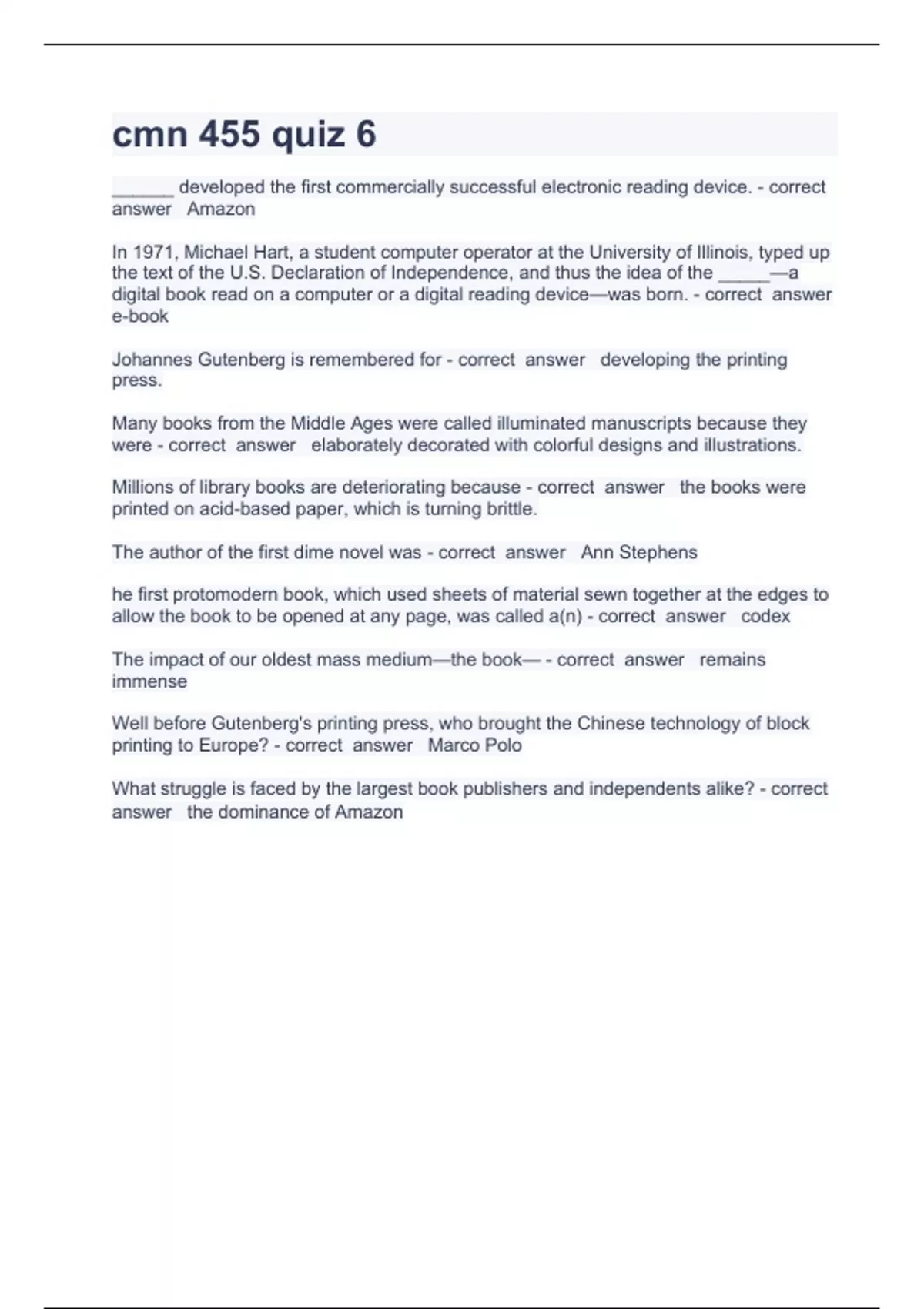 CMN 212 Exam 2 Quiz and FAQ Question and answers already pass