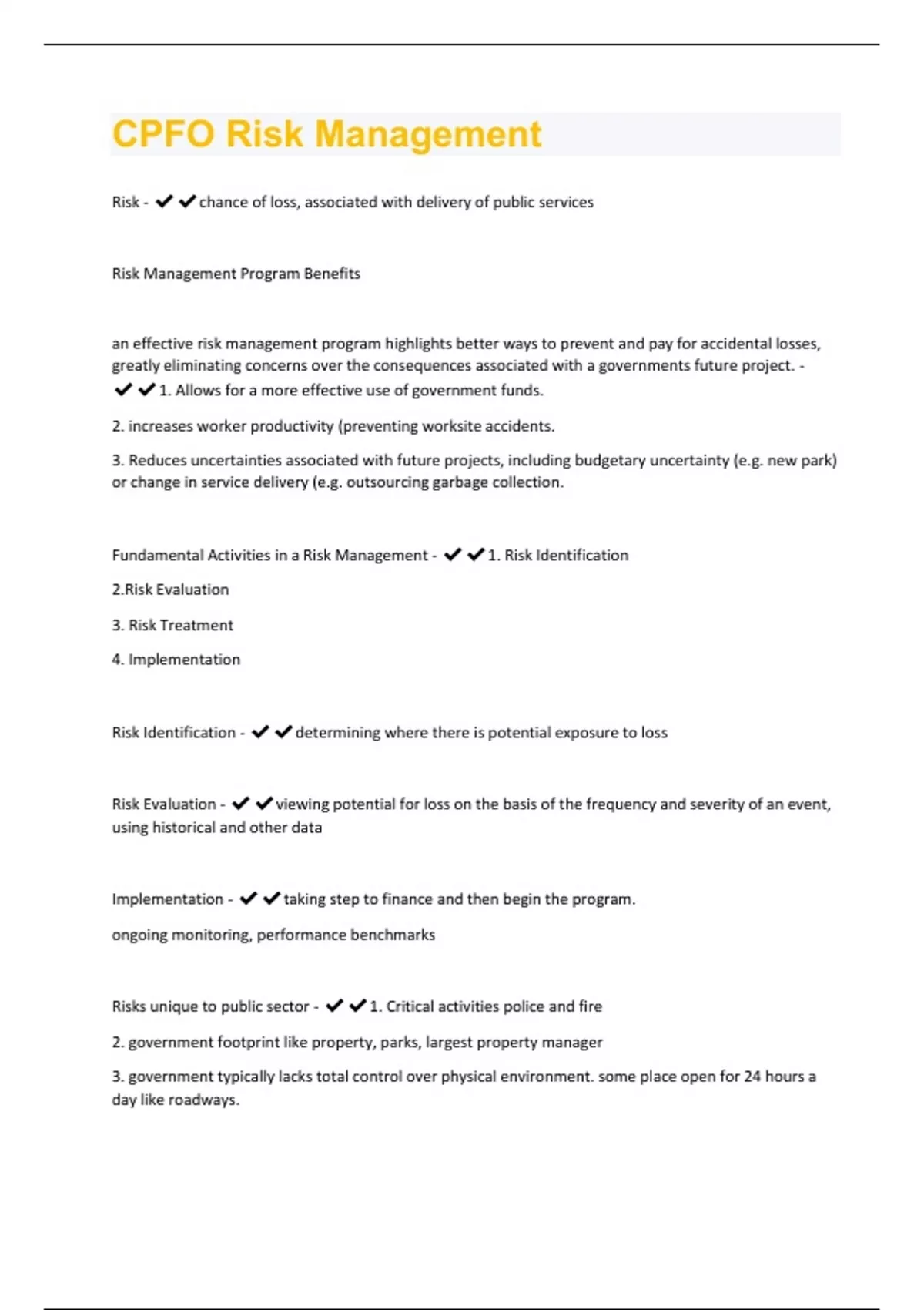 CPFO-Risk Management Questions and Answers(A+ Solution guide)