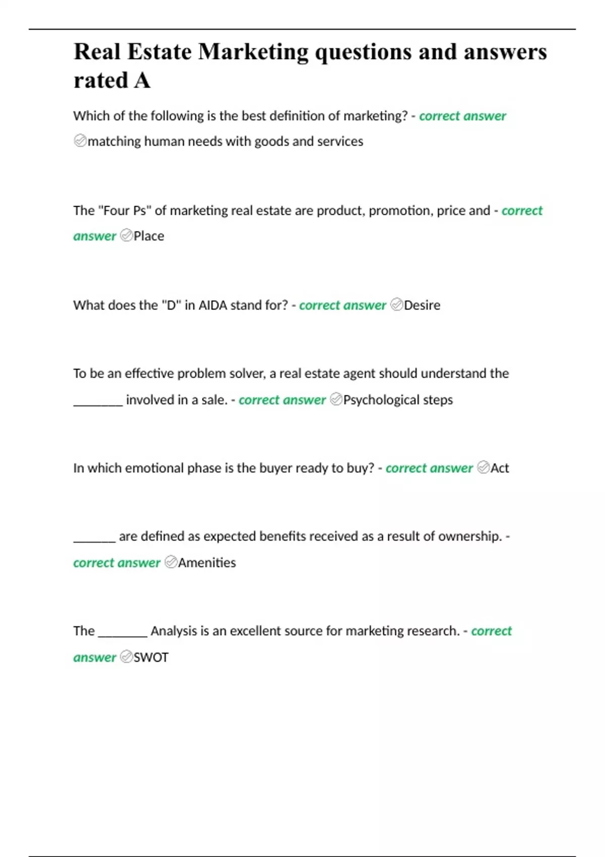 Real Estate Marketing: Commercial Real Estate (SAE) questions and answers