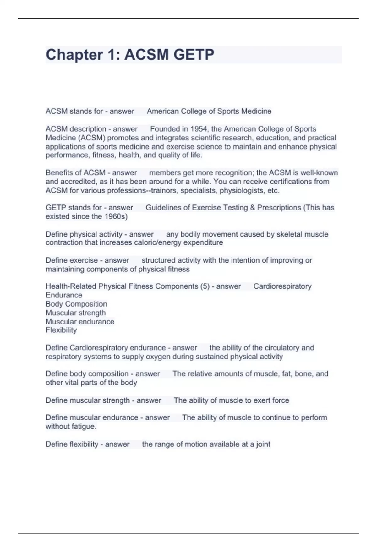 Exam (elaborations) 11 ACSM guidelines Questions with correct Answers 2023 Exam (elaborations) ACSM - CEP QUESTIONS WITH SOLUTIONS 2023 Exam (elaborations) ACSM Certified Exercise Physiologist Exam Questions and Answers Rated A+ 2023 Exam (elaborations) ACSM Certified Exercise Physiologist Questions and Answers, LATEST UPDATED Exam (elabor