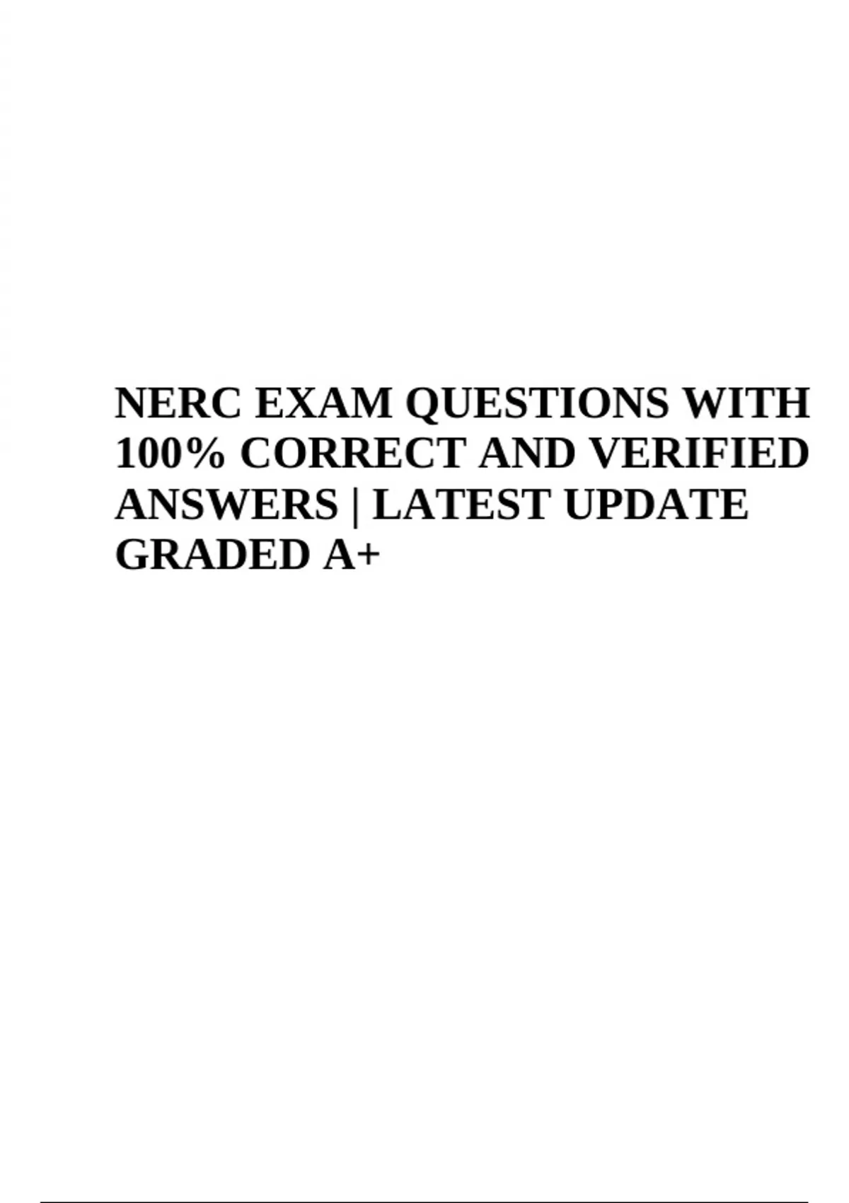 NERC Pre-Assessment Questions And Answers Latest % Correct | NERC Prep Exam Questions and Answers Latest Graded A+ | NERC Final Exam Practice Questions and Answers | NERC FINAL EXAM QUESTIONS WITH 100% CORRECT ANSWERS LATEST UPDATE GRADED A+ & SOS NERC RELIABILITY EXAM QUESTIONS WITH ANSWERS LATEST (VERIFIED)