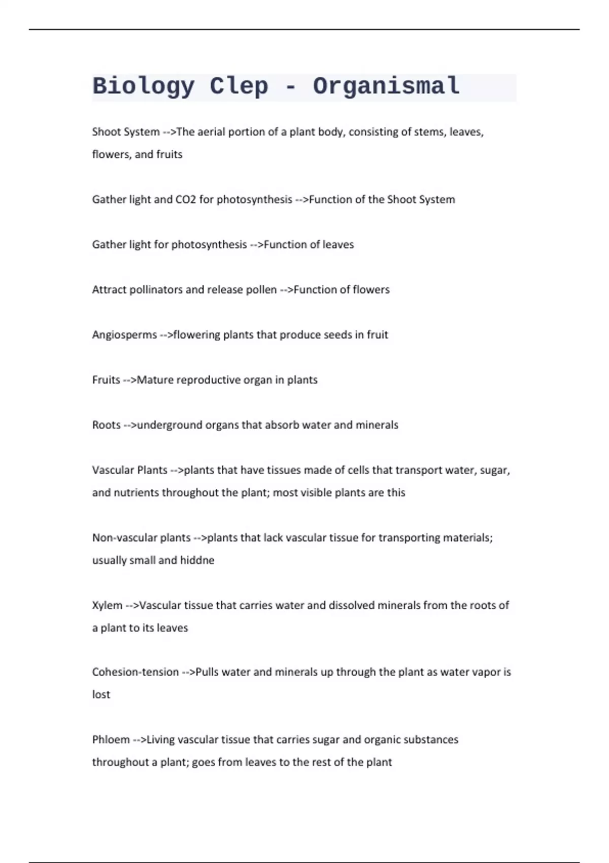 Clep Biology- Plants Study Guide 2023/2024