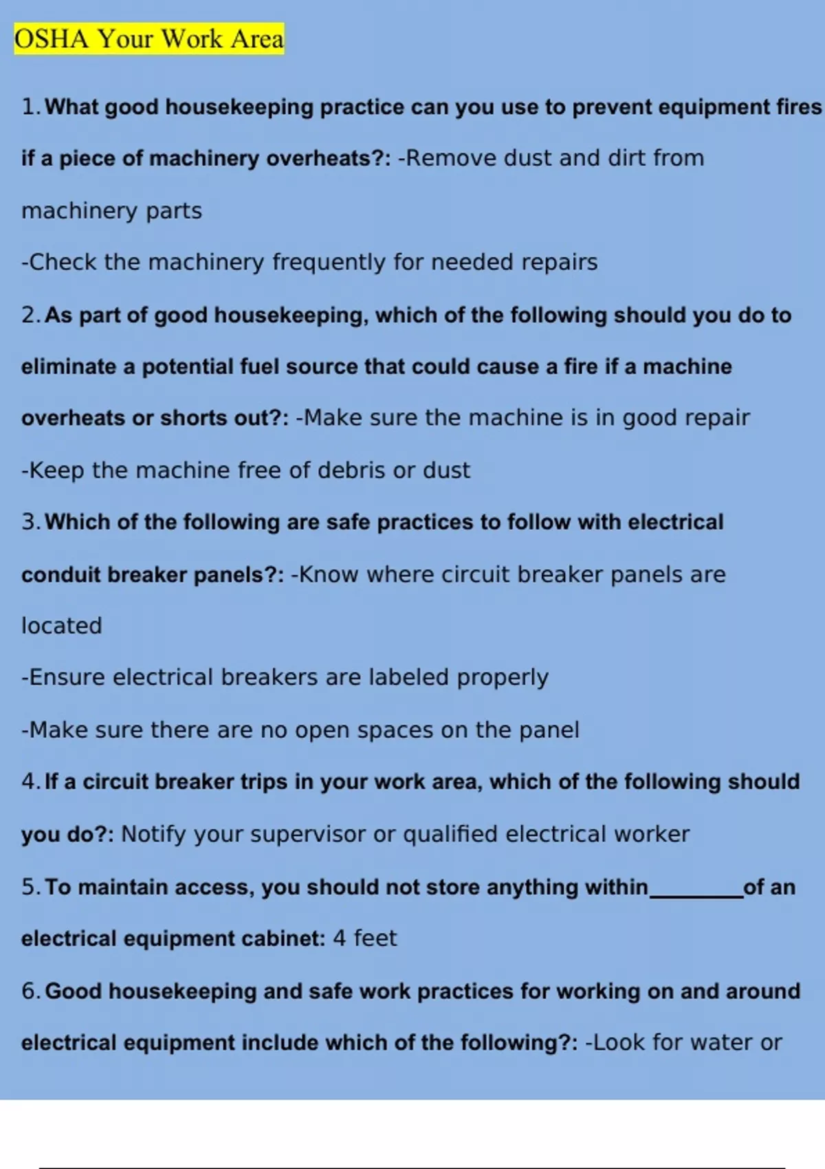 OSHA Your Work Area Questions with 100% Correct Answers | Verified | Updated