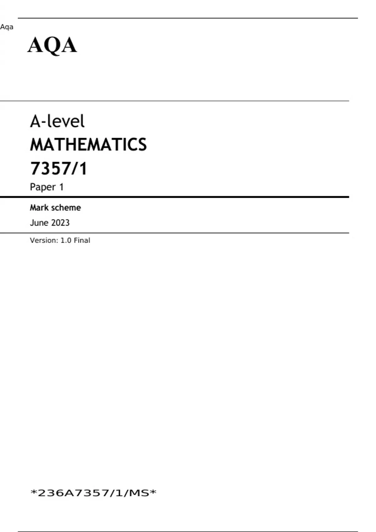 AQA A-level MATHEMATICS Paper 1 JUNE 2023 QUESTION PAPER and MARK SCHEME
