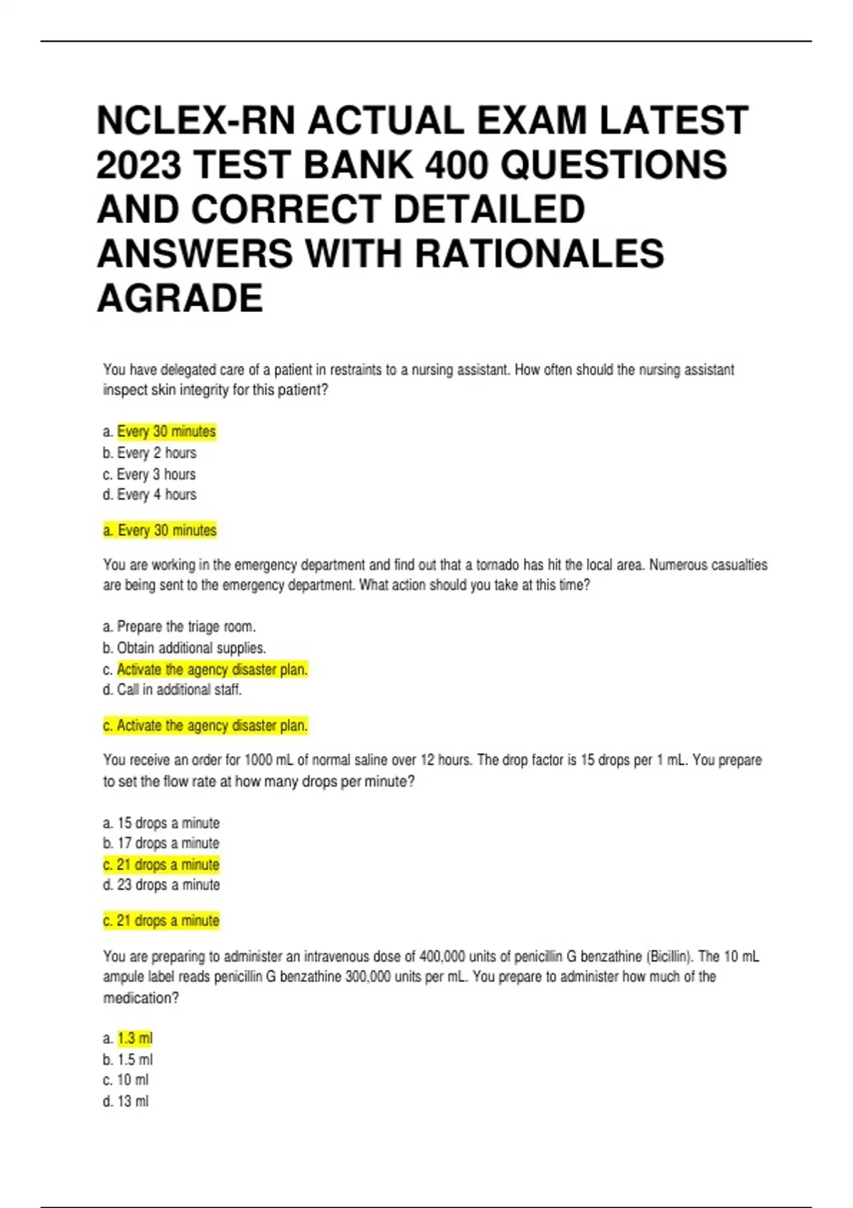 Exam (elaborations) NCLEX RN ACTUAL EXAM /RN NCLEX ACTUAL EXAM COMPLETE 300 QUESTIONS AND CORRECT DETAILED ANSWERS WITH RATIONALES (VERIFIED ANSWERS) |ALREADY GRADED A+ NCLEX RN EXAM 2022 2 Exam (elaborations) NCLEX RN ACTUAL EXAM TEST BANK OF REAL QUESTIONS & ANSWERS NCLEX 2023/2024 graded A 3 Exam (elaborations) NCLEX RN ACTUAL EXAM TEST BANK O