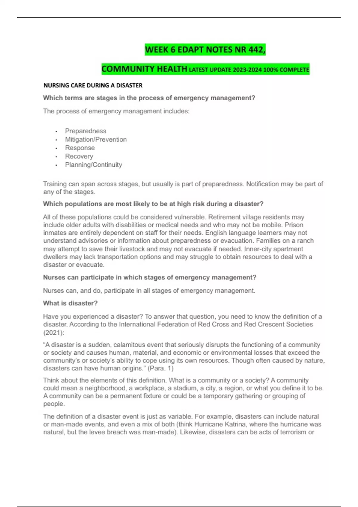 A PACKAGE DEAL FOR NR 442 WEEK 2,3,6 EXAMS, NOTES AND CASES ALL BUNDLED TOGEHER, 100% COMPLETE SOLUTION, ACE YOUR GRADES