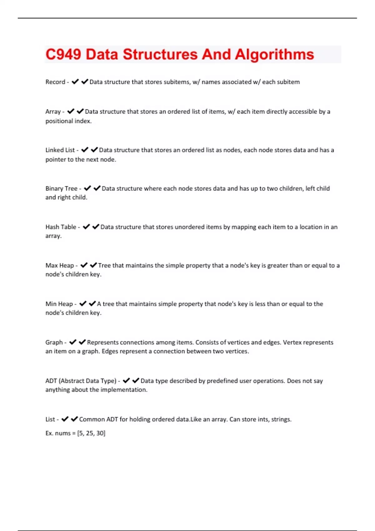 C949 Data Structures And Algorithms Questions and Answers(A+ Solution guide)