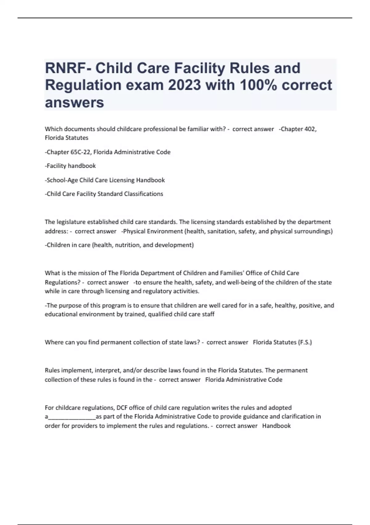 RNRF DCF exam 2023 with 100% correct answers RNRF exam 2023 with 100% correct answers