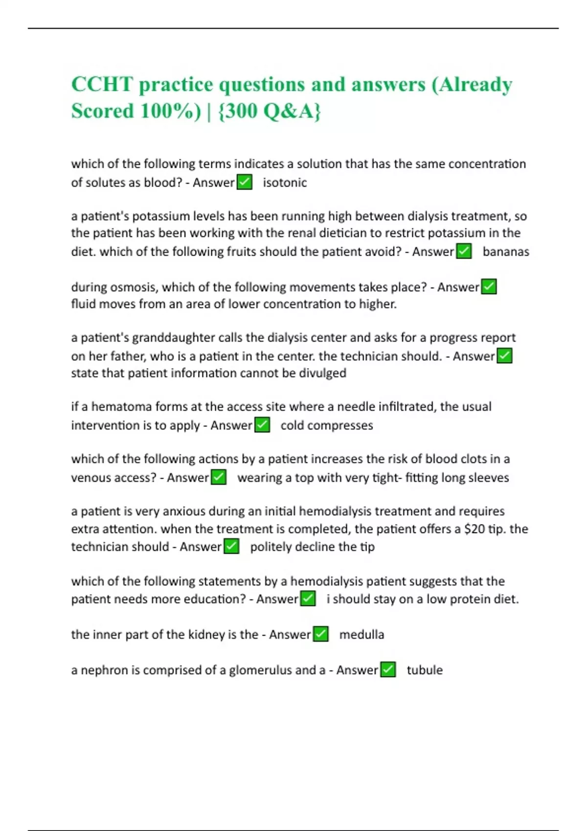 CCHT BUNDLED PRACTICE EXAM Actual Questions and Answers Verified by Expert | 100% Correct | A+ GUIDE
