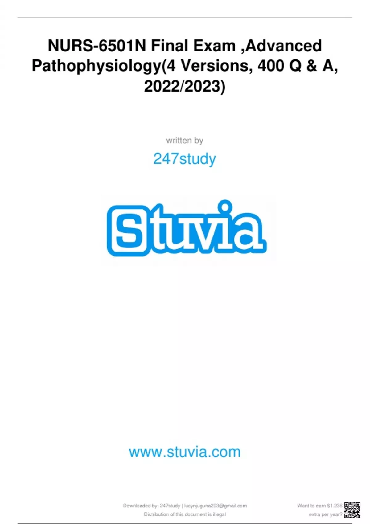 NURS-6501N Final Exam ,Advanced Pathophysiology(4 Versions, 400 Q & A, 2022/2023) NURS-6501N Final Exam ,Advanced Pathophysiology(4 Versions, 400 Q & A, 2022/2023)