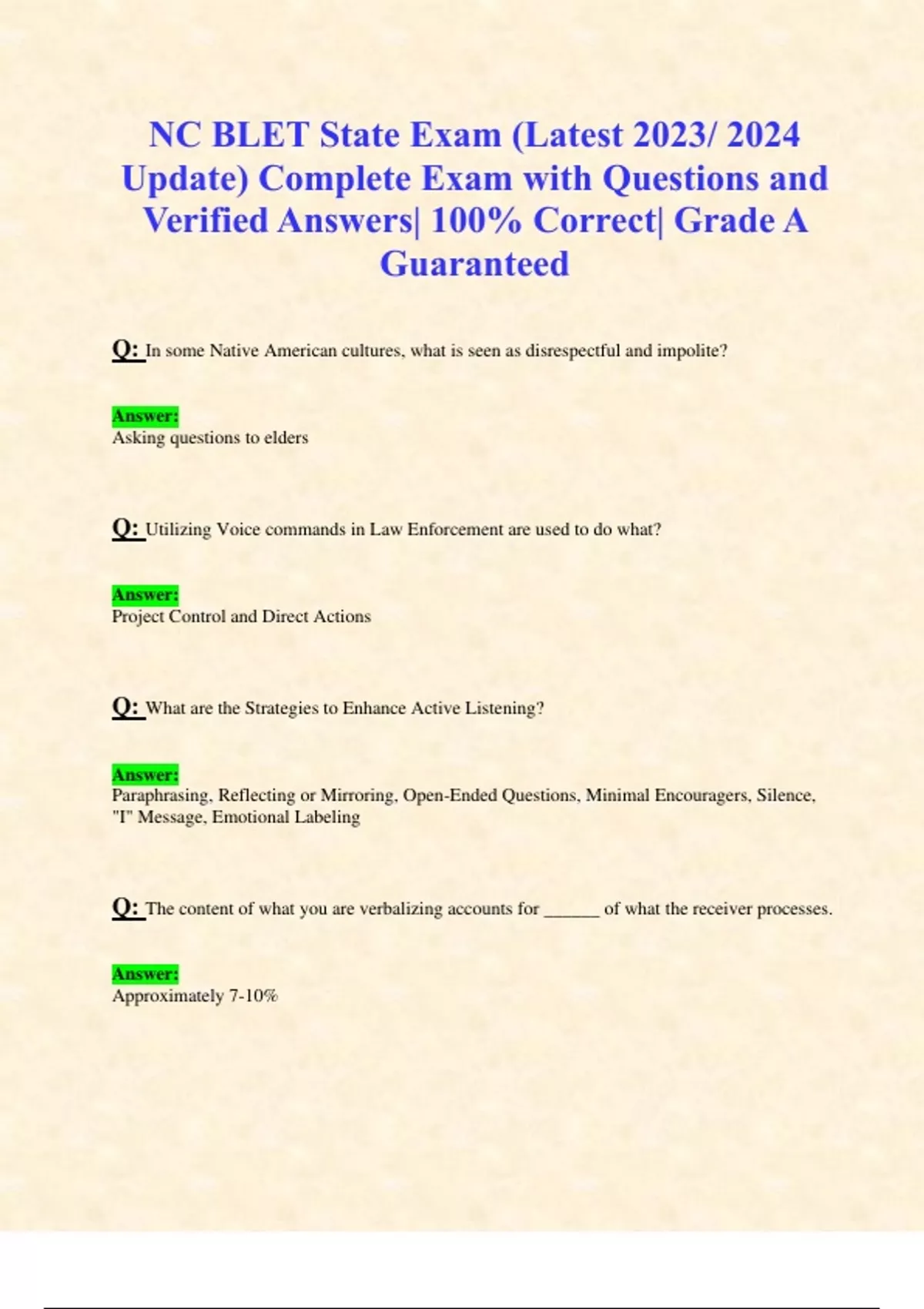 NC BLET Final Exam (Latest 2023/ 2024 Update) 300+ Questions and Verified Answers| 100% Correct| Grade A