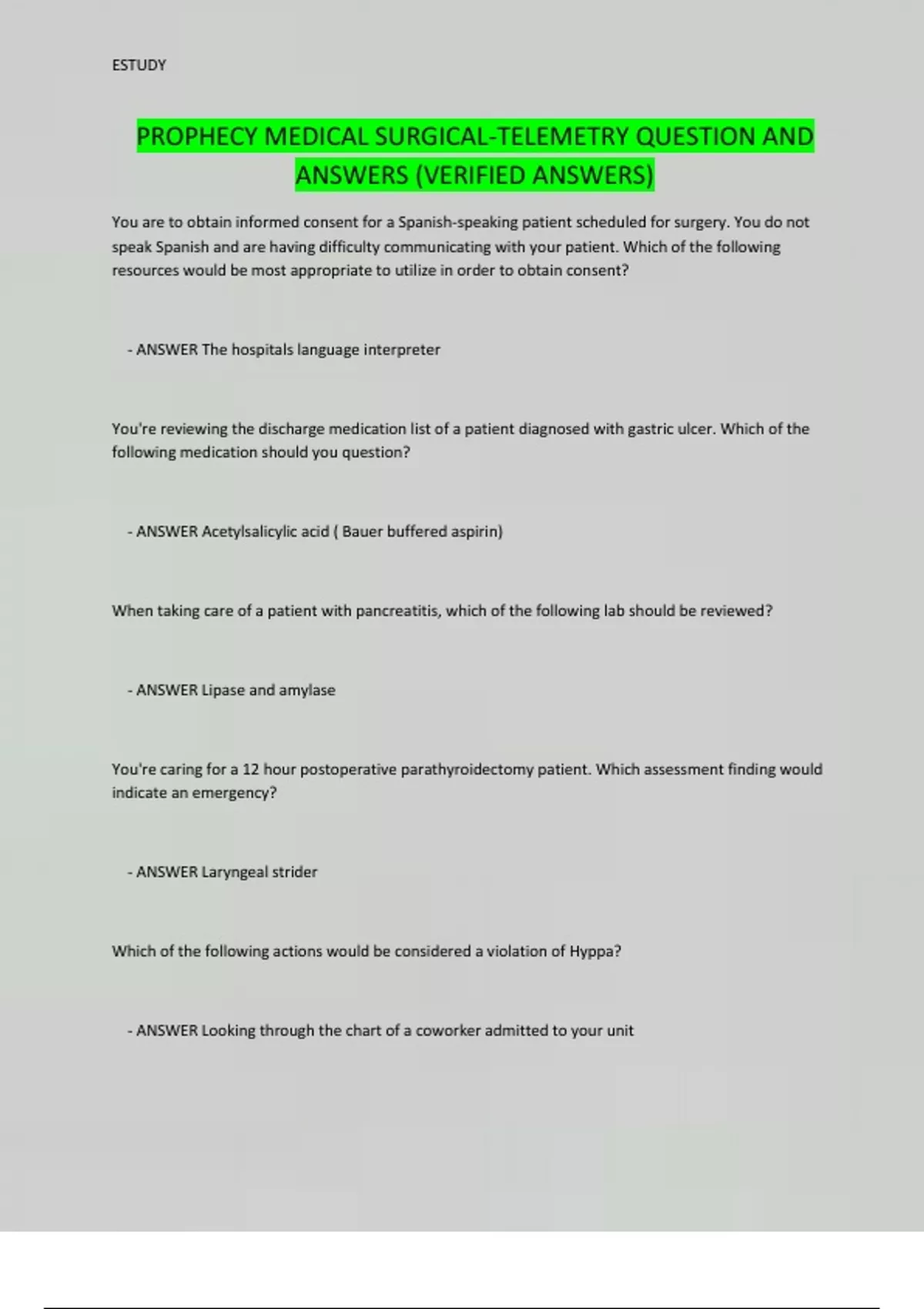 PROPHECY HEALTH MEDICAL SURGICAL RN 2023/24 PACKAGE DEAL