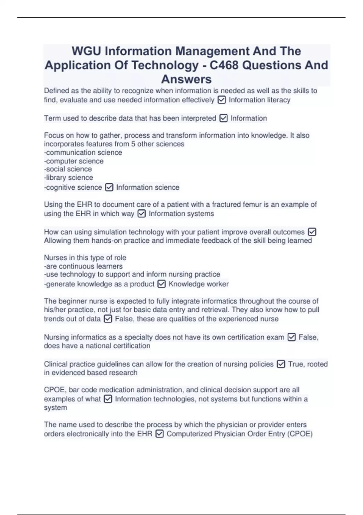WGU C468 Information Management verified Package Deal 2023/2024 WGU C468-Information M & Tech Questions And Answers 2023/2024