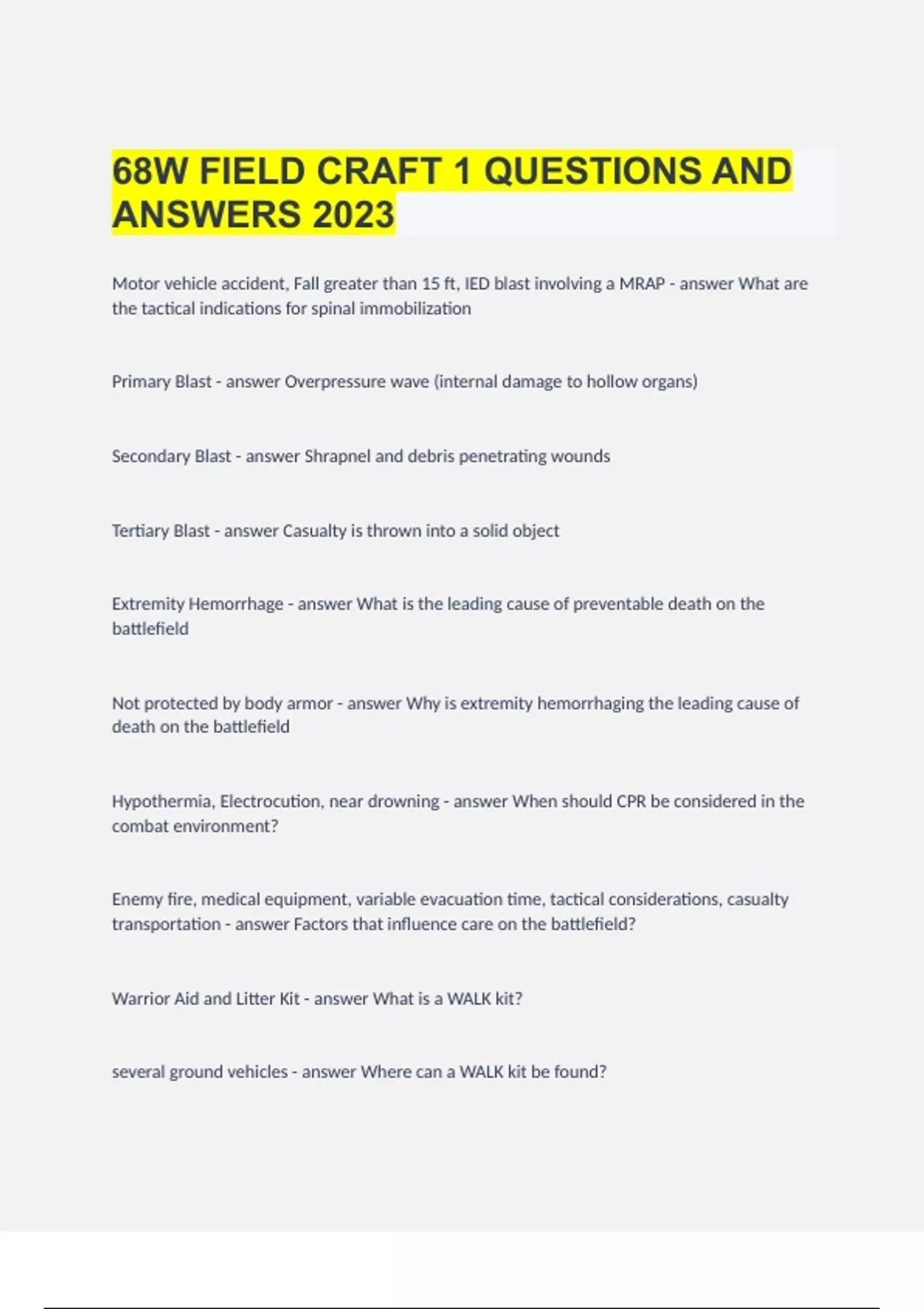 68W FIELD CRAFT 1 QUESTIONS AND ANSWERS 2023.
