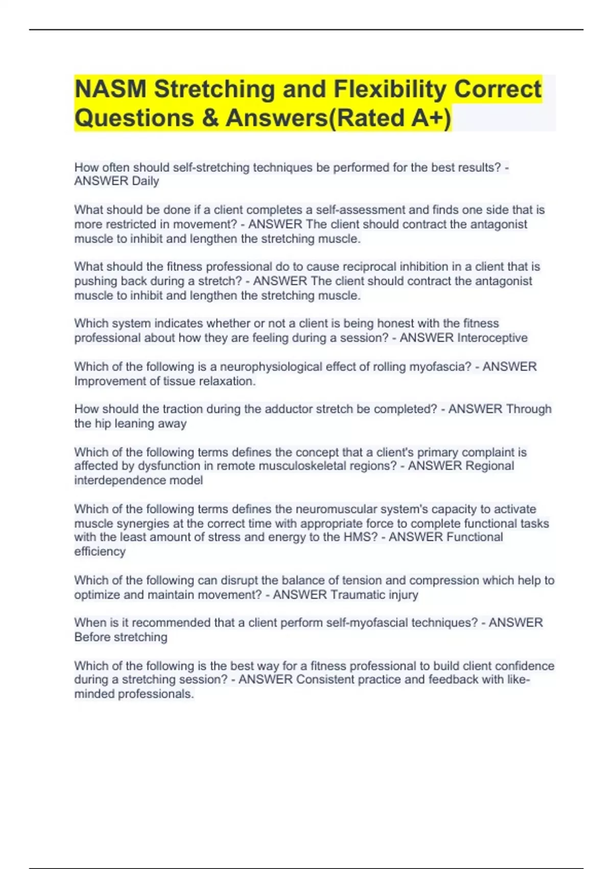 PACKAGE DELA FOR NASM Stretching and Flexibility Correct Questions & Answers(Rated A+)PACKAGE DELA FOR NASM Stretching and Flexibility Correct Questions & Answers(Rated A+)PACKAGE DELA FOR NASM Stretching and Flexibility Correct Questions & Answers(Rated A+)PACKAGE DELA FOR NASM Stretching and Flexibility Correct Questions & Answers(Rated A+)