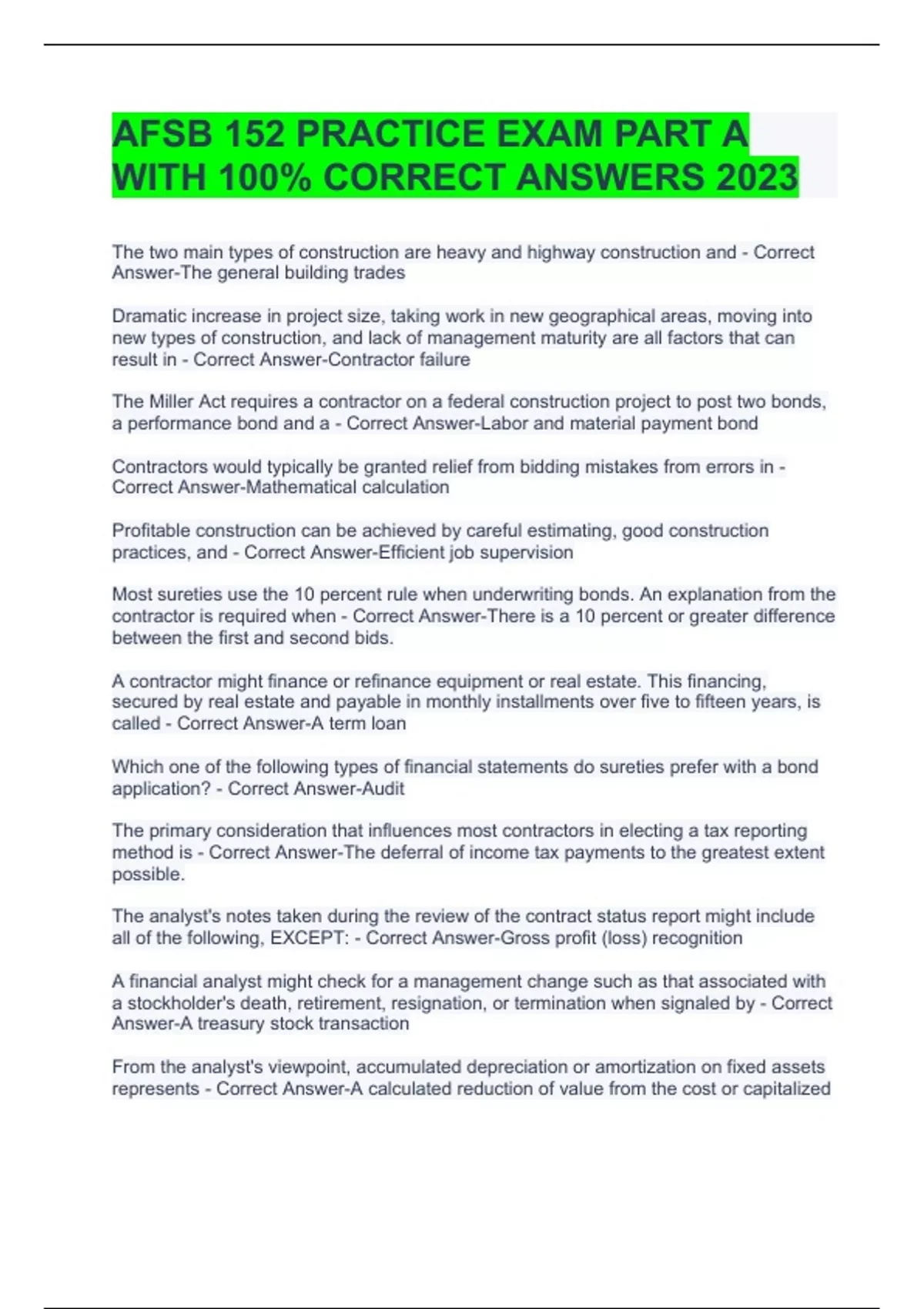 Package deal for AFSB 152 PRACTICE EXAM PART A WITH 100% CORRECT ANSWERS 2023