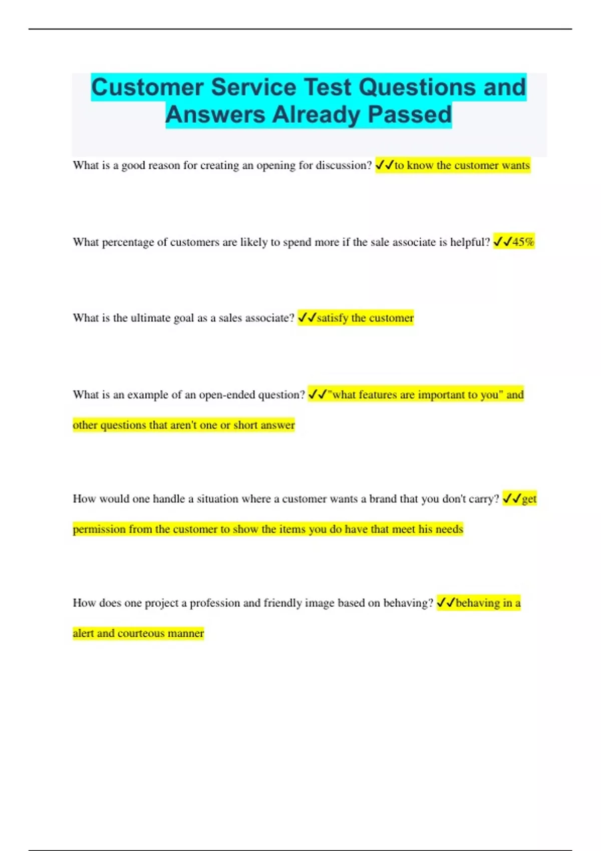 Customer Service Bundled Tests Questions and Answers 100% Solved