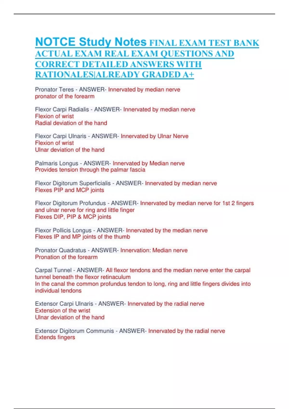 bundle for NOTCE Exam - Adult/Older Adult OT REAL EXAM QUESTIONS AND CORRECT DETAILED ANSWERS WITH RATIONALES|ALREADY GRADED A+