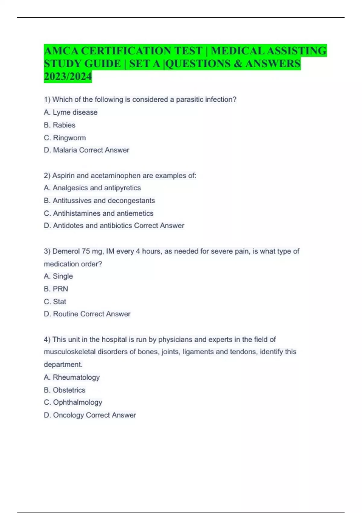 AMCA Phlebotomy EXAM |AMCA MEDICAL ASSISTANT EXAM|AMCA-MAC Exam Study Guide|AMCA Certification Exam |MAC AMCA EXAM| AMCA CERTIFICATION TEST | MEDICAL ASSISTING STUDY GUIDE | SET A |