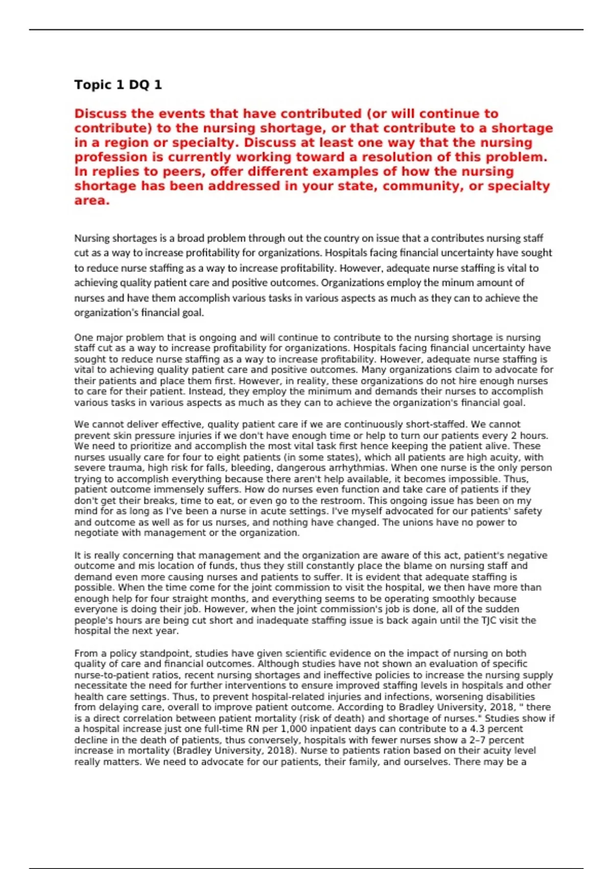 NRS 440VN Topics 1 - 8 Complete Discussion ( Package Deal )