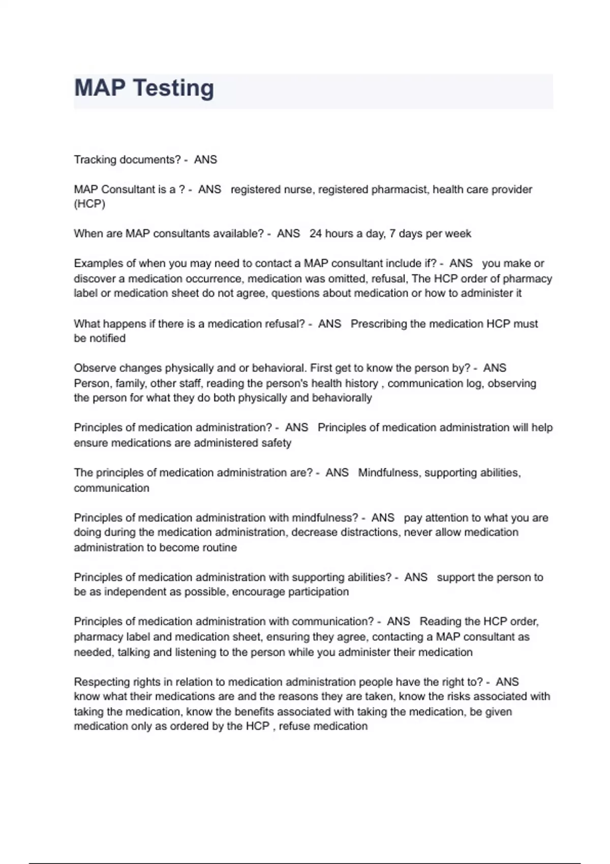 MAP Knowledge Test Questions And Answers
