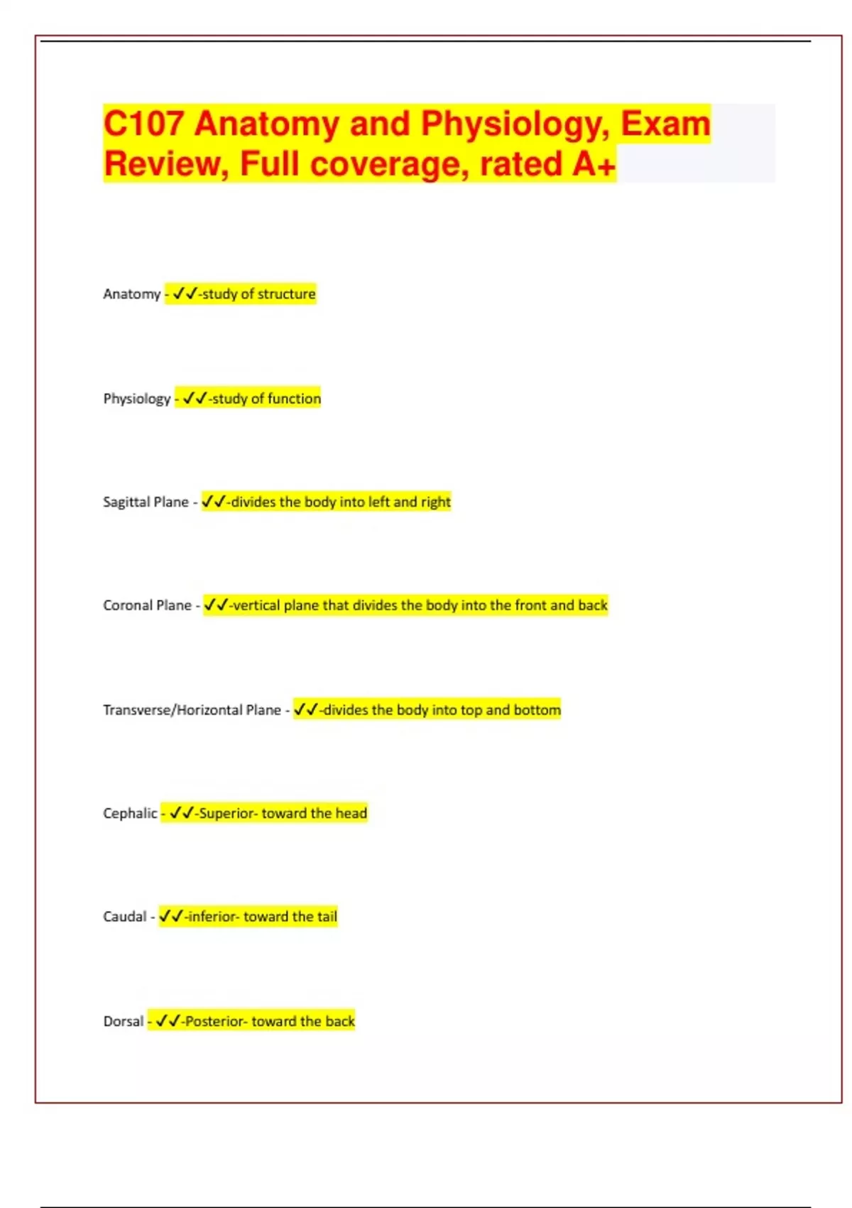 (Top QUALITY 2024/2025 EXAM REVIEW) WGU C107 Module 1 ANATOMICAL TOOLBOX. Questions and answers, graded A+. VERIFIED.