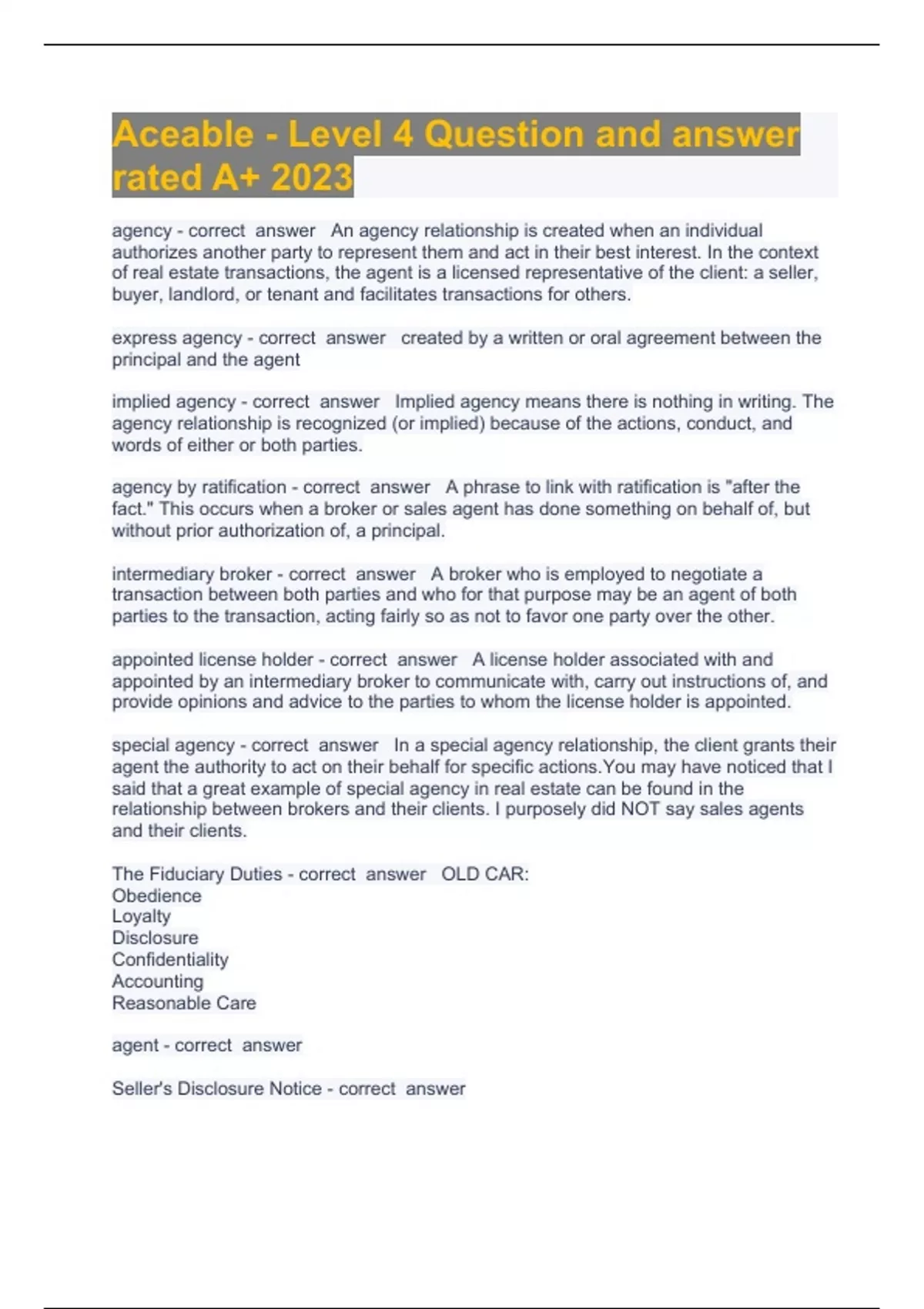 Aceable Agen1 Questions with complete solution 2023/2024 Exam (elaborations) Aceable Agen2 Question and answers already passed 2023/2024 Exam (elaborations) Aceable Agen3 Question and answers 2023/2024 verified to pass Exam (elaborations) Aceable Agen4 Question and answers already passed 2023/2024 Exam (elaborations) Aceable Agen5 Questions
