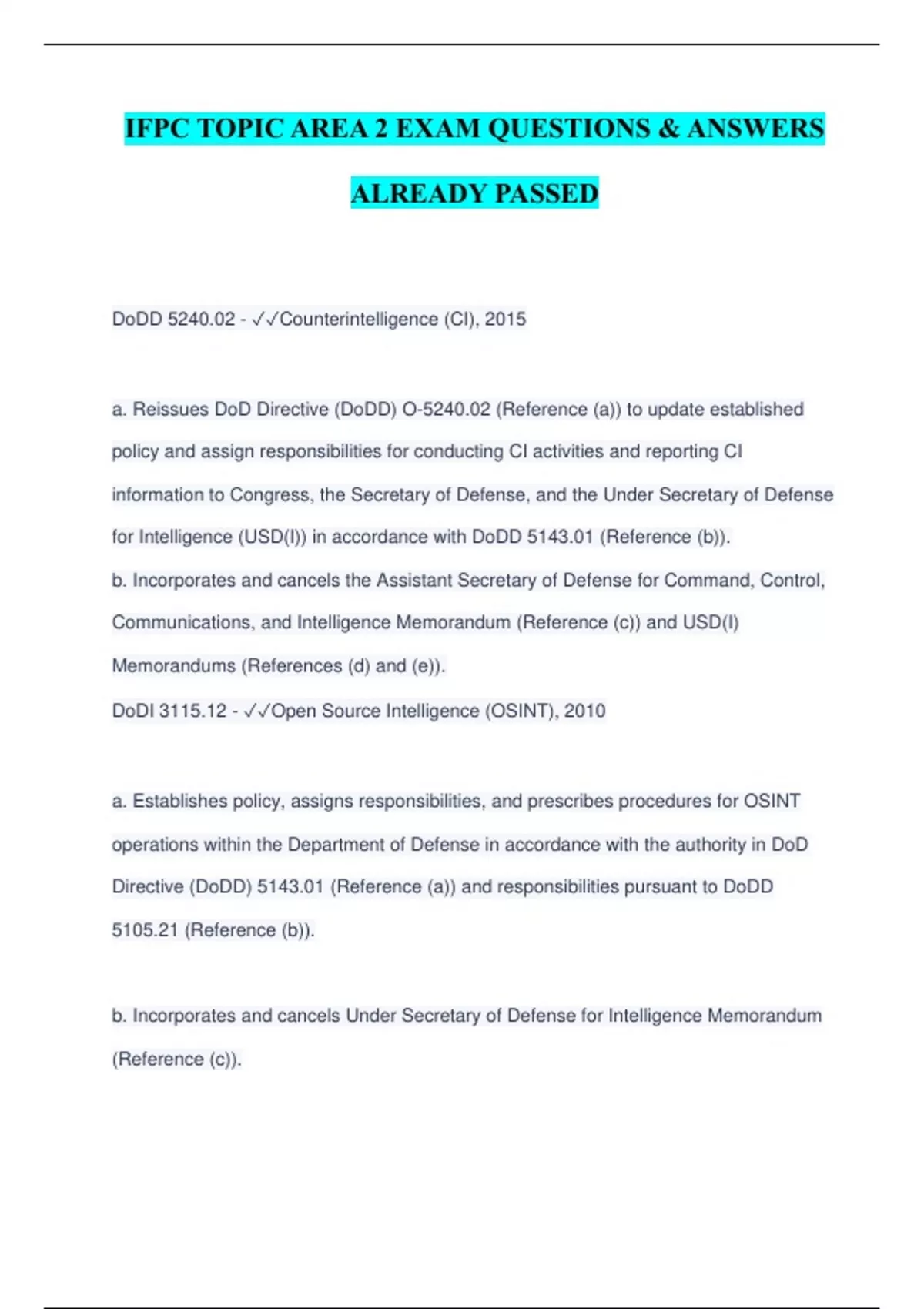 IFPC Topic 8 How do my actions affect my status as intelligence professional (10%) questions and answers Already Passed