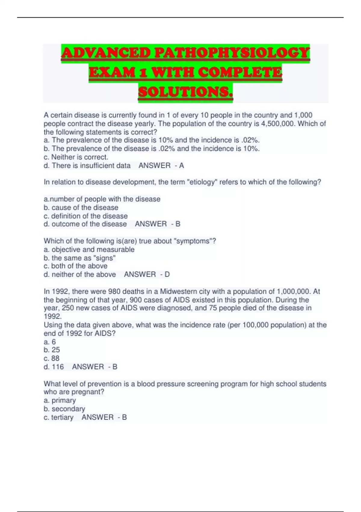 ADVANCED PATHOPHYSIOLOGY- CHAPTER 1 QUESTIONS AD ANSWERS GRADED A NURS 7425 - ADVANCED PATHOPHYSIOLOGY FINAL EXAM GRADED A ADVANCED PATHOPHYSIOLOGY EXAM 2 ALREADY PASSED. ADVANCED PATHOPHYSIOLOGY EXAM 1 ANSWERED AND VERIFIED 100% ADVANCED PATHOPHYSIOLOGY EXAM 1 WITH COMPLETE SOLUTIONS. WALDEN UNIVERSITY NURS 6501 ADVANCED PATHOPHYSIOLOGY