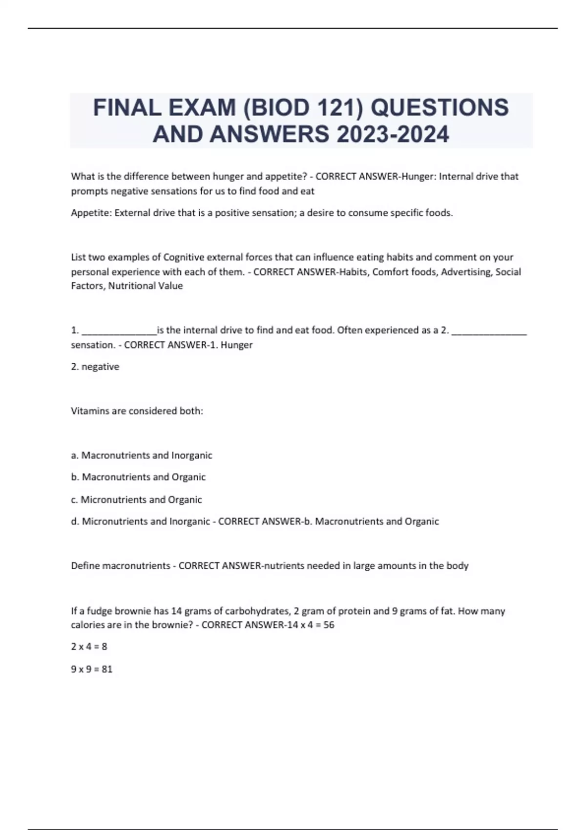 BIOD 121 MODULE 6 PRACTICE TEST EXAM 2023/2024 MODULE 2 (BIOD 121) STUDY GUIDE MATERIAL EXAM BIOD 121 PORTAGE NUTRITION MODULE 4 EXAM TEST BIOD 121 PORTAGE NUTRITION MODULE 4 EXAM TEST FINAL (BIOD 121 PORTAGE NUTRITION) REVIEW TEST AND STUDY GUIDE BIOD 121 MODULE 1 EXAM NUTRITION PORTAGE LEARNING COMPLETE EX