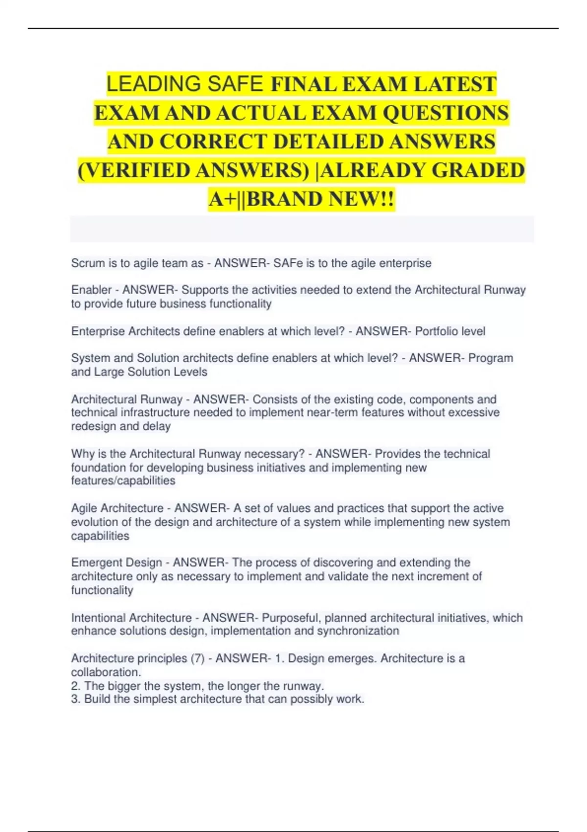 1 Exam (elaborations) SAFe 4 Practitioner Certification Exam Questions And Answers 2 Exam (elaborations) SAFe Certification FINAL EXAM LATEST EXAM QUESTIONS AND CORRECT DETAILED ANSWERS (VERIFIED ANSWERS) |ALREADY GRADED A+ 3 Exam (elaborations) SAFe Certification Exam Questions And All Correct Answers 4 Exam (elaborations) Leading SAFe 4.5 2023