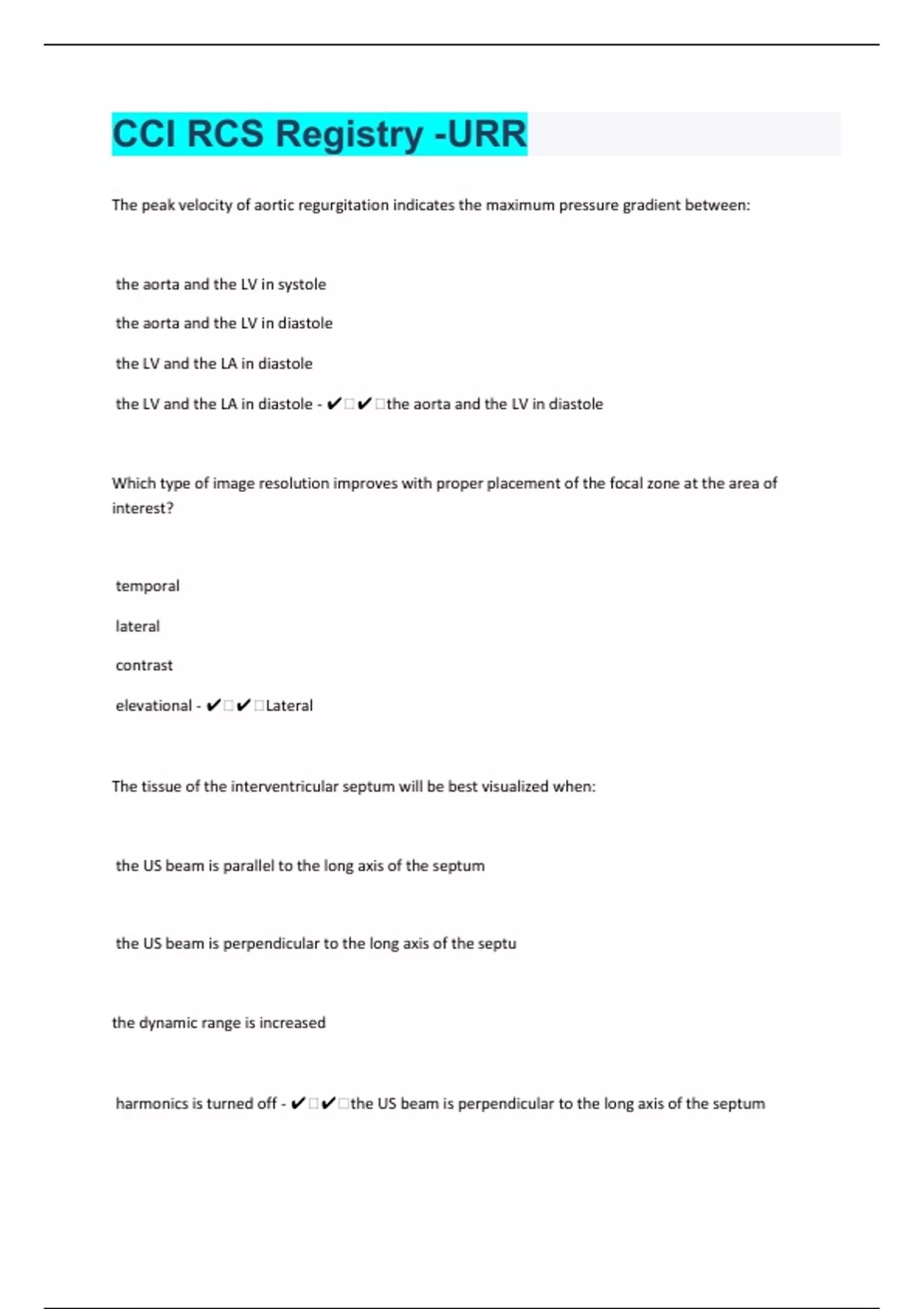CCI Echo Review!! 129 Questions With Complete Solutions