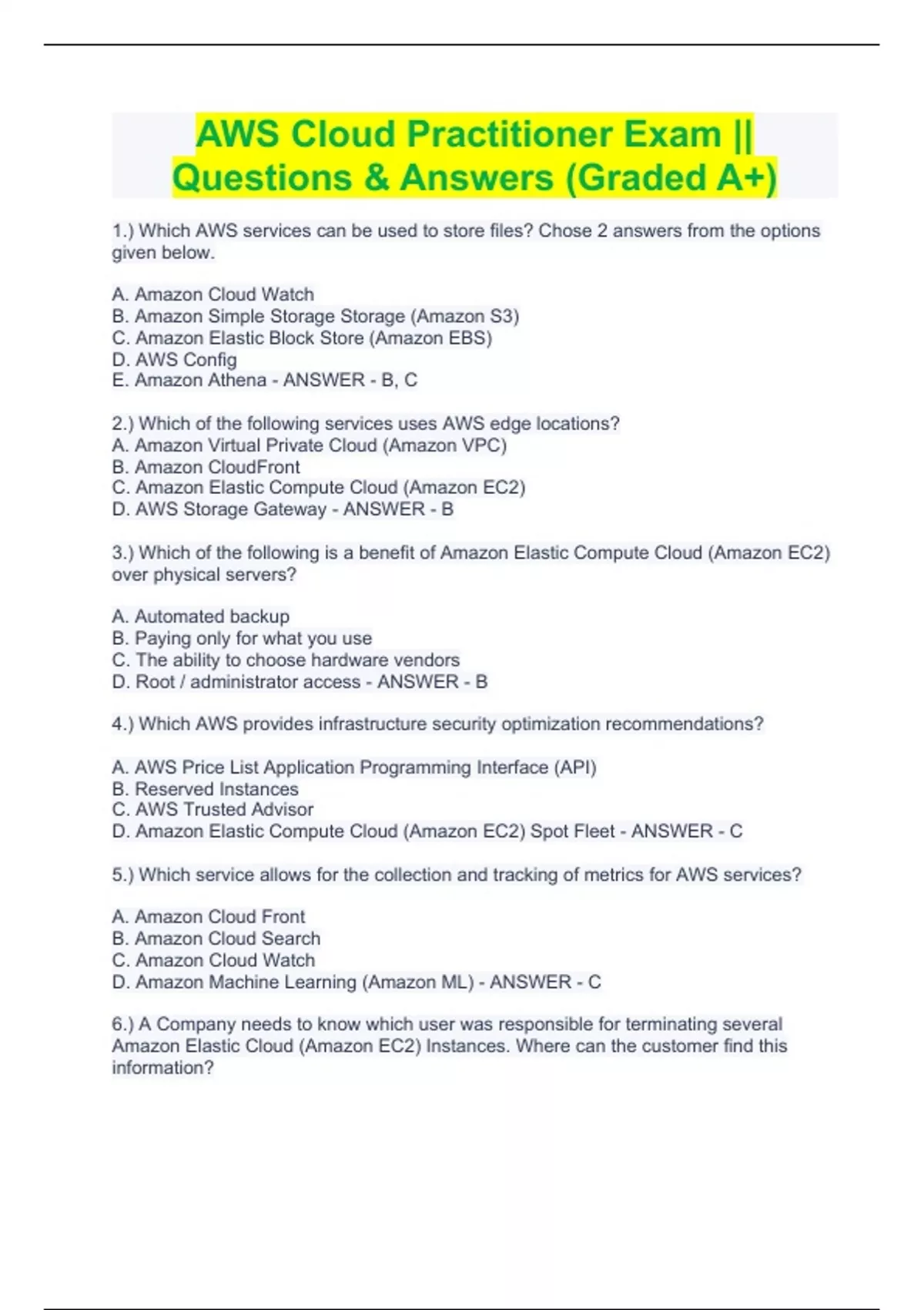 AWS Cloud Practitioner Certification Exam Bundle () || With Complete Questions & Answers (100% Correct) || Guaranteed Pass!